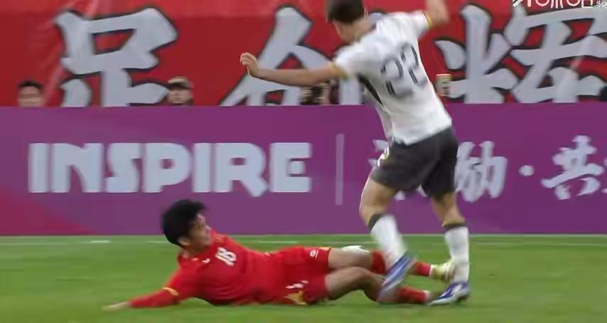 u23国足与越南队之战第28分钟,毛伟杰右路突破下底,被越南后卫飞铲,并抬脚蹬到