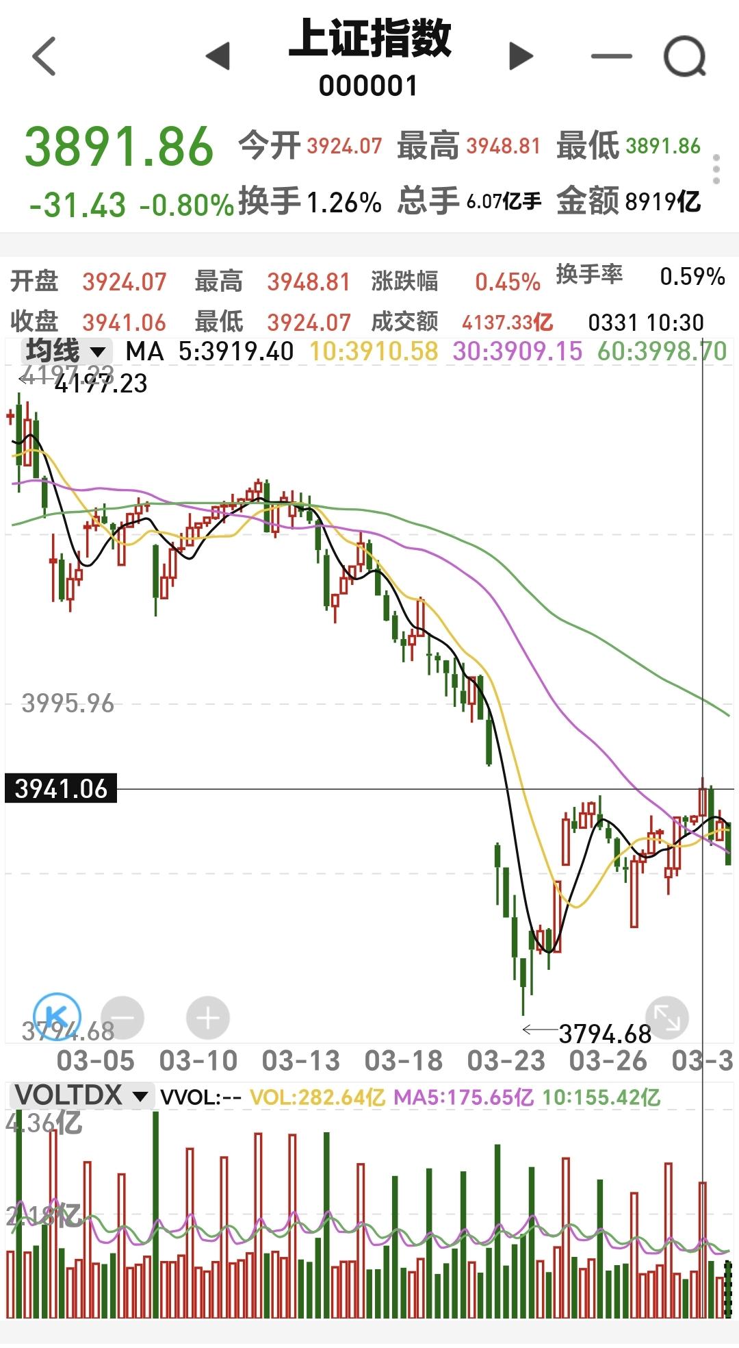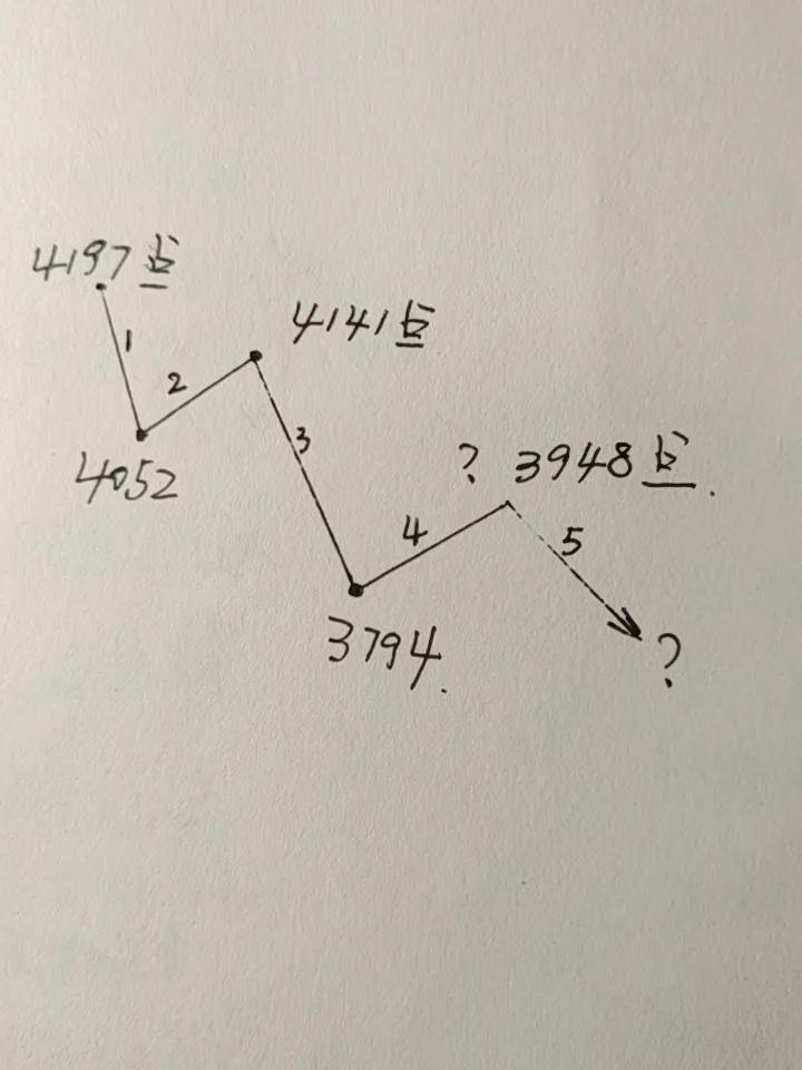 基金:今天会不会高开低走 昨天市场下跌,许多人不知道指数现在处于什么位置,我画了一张示意图。 从4197点到4052点是一浪下跌,从4052点到4141点是二浪上涨,从4141点到3794点是三浪下跌,从3794点到3948点是四浪上涨,从3948点开始进入五浪下跌,五浪下跌的低点还没有确定,但在理论上会低于3794点。 图中我在3948点附近画了一个问号,主要是因为现在还不知道3948点是不是四浪的最高点,如果明天上涨突破3948点,那么3948点就不是四浪的最高点,四浪的最高点就变成了明天盘中的最高点,如果明天上涨突破不了3948点,那么,四浪的高点就还是3948点。 五浪的低点我也没有标注出来,因为现在还没有确定3948点就是四浪的高点,如果确定了3948点就是四浪的高点,那么五浪的低点大概率会低于3794点。 上面说的走势可能性占到60%以上,但还有一种不到10%概率的走势,就是从3794点上涨到了3948点,在3948点附近稍微震荡调整以后继续上涨,先是突破4000点,不长时间之后突破4197点,也就是这一轮的调整,只有三浪ABC的调整,根本不是图中12345式的调整。 我觉得,因为大概率是12345式的调整,所以,我在调整的初期进行了再一次的止盈,因为还有小概率ABC式的调整,所以,我即使进行了再一次止盈,也没有进行全部清仓,我们在尊重大概率的同时,也要防范小概率事件的发生,也就是任何事情都不能走极端,现在的情况之下,空仓和满仓都是值得推敲的,空仓和满仓都是极端的做法。 如果这一次是12345式的调整,在五浪的末期,我大概率会满上,如果是ABC式的调整,我大概率会追涨进场,究竟会是哪一种进场方式,现在还不知道,但我肯定是会按照既定的操作策略来办,不管哪样的情况之下都会进场,因为我要跟随阶段性上涨,因为我想在阶段性上涨的过程当中挣得盆满钵满。 你觉得是五浪下跌调整的可能性大,还是ABC是调整的可能性大? 美股今天大涨,纳斯达克指数上涨了3.67%,标普指数上涨了2.7%,道琼斯指数上涨了2.26%,三大指数的上涨幅度都比较大。 今天我们的市场在外围市场走势的影响下会高开,高开以后还是要观察成交量,还是要观察有没有资金进场,成交量的放大幅度最好是在10%至20%之间,放量幅度过小,不能称之为有效放量,放量幅度够大,也不是什么好现象,放量幅度过小,甚至是缩量的情况之下,不排除还会冲高回落。 今天在上冲的过程当中,观察能不能突破3955点,也就是完全回补上周一向下的跳空缺口,回补这个缺口必须要放量,缺口的上方是有大量的套牢盘的,这不是2万亿左右的成交量可以解决的。 大家帮忙评论点赞,转发和分享,谢谢大家的支持。