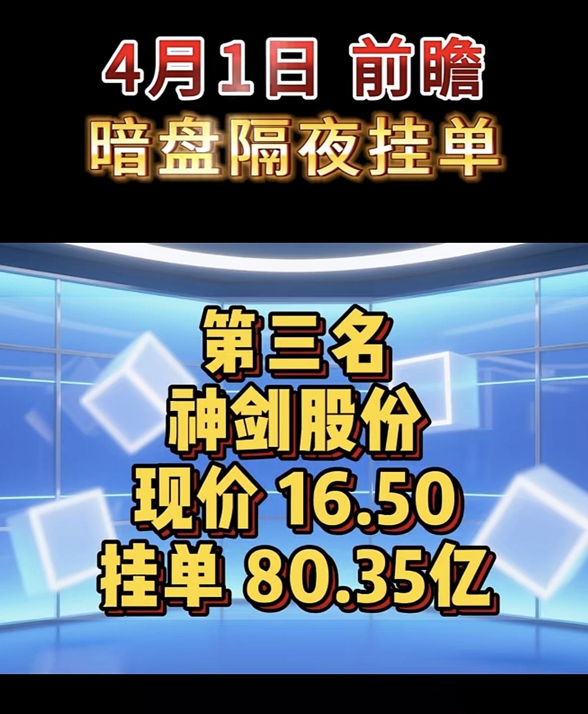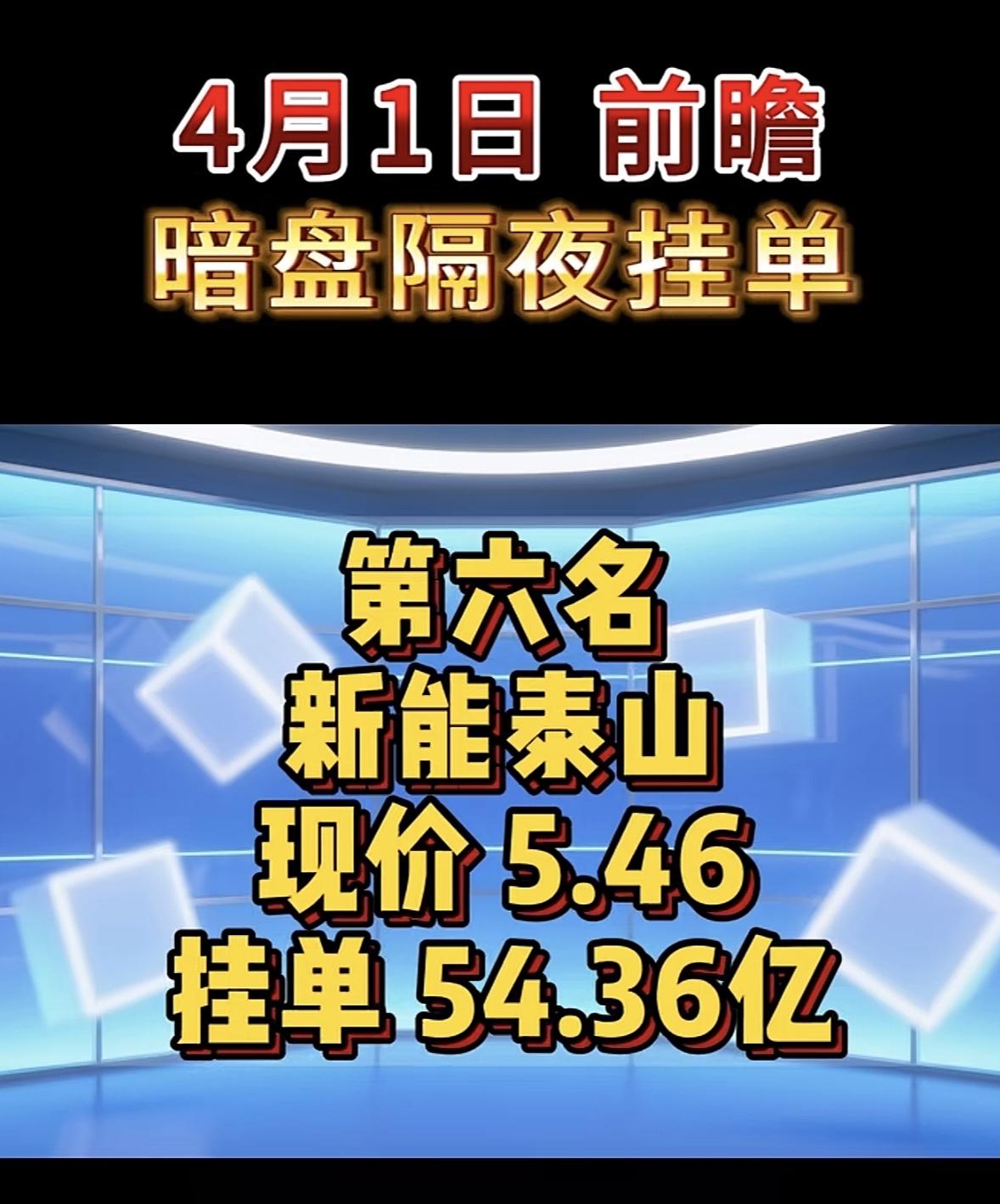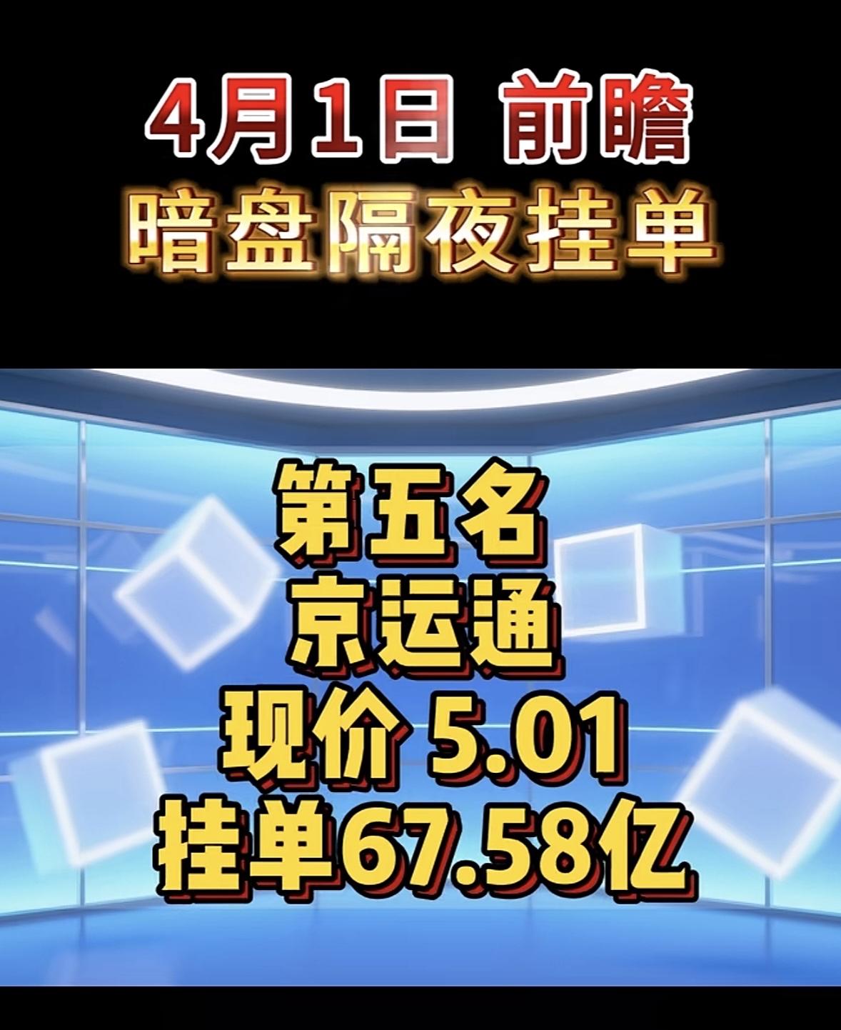 4月1日周三暗盘隔夜挂单排行榜出炉 京运通这波操作太猛了!现价5.01,居然挂单67.58亿。此前交易所数据显示,京运通曾涨幅10.07%封板,封板资金11.65亿元,总市值达121.45亿元。 从股权质押情况看,截止2026年2月27日质押总比例13.68%,质押总股数3.30亿股。市场围绕其光伏及核电相关业务炒作,不过自4月1日起光伏产品增值税出口退税取消。“十五五”是光伏行业关键期,行业正转型。这67.58亿挂单后续会掀起怎样的波澜,值得关注。