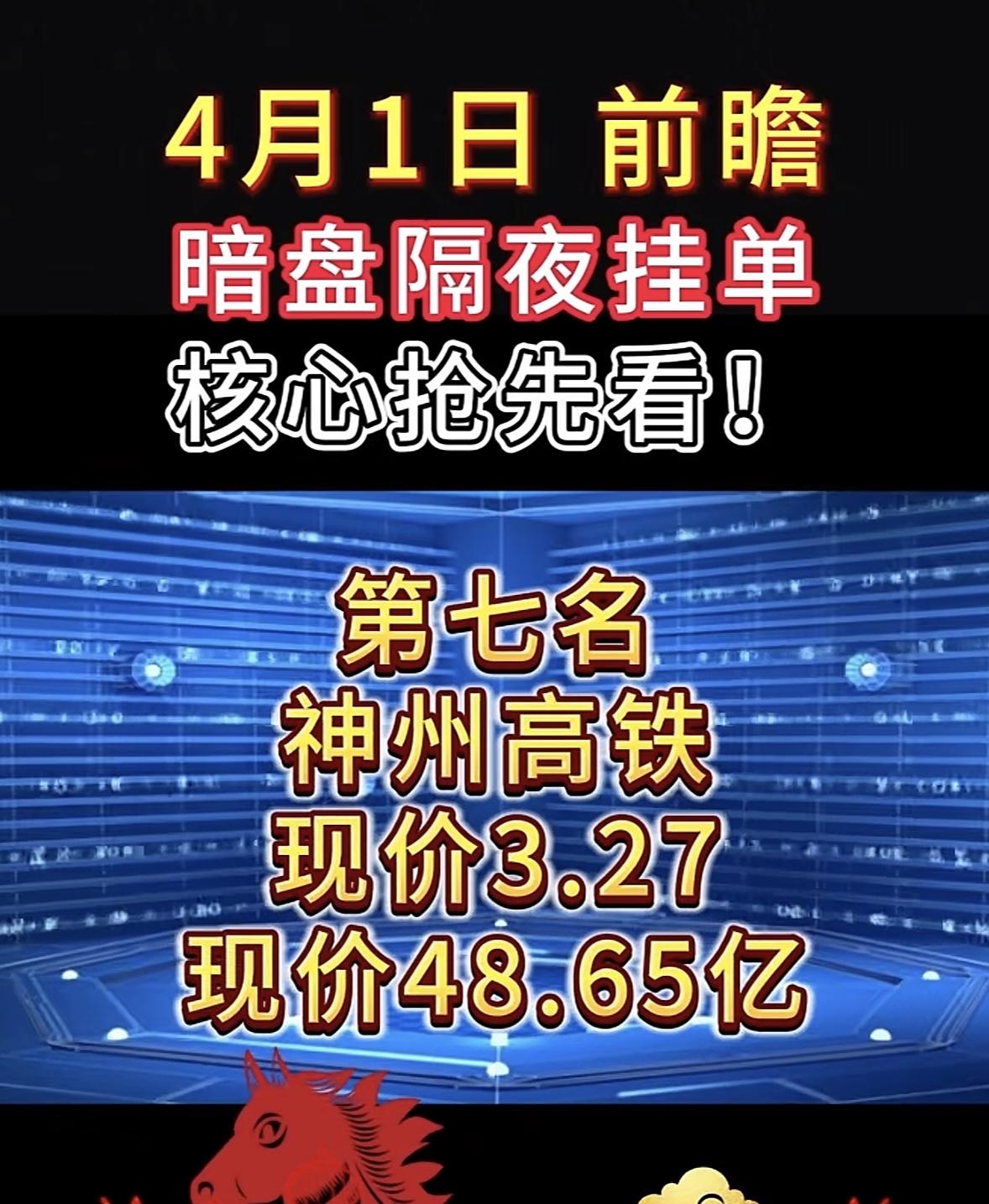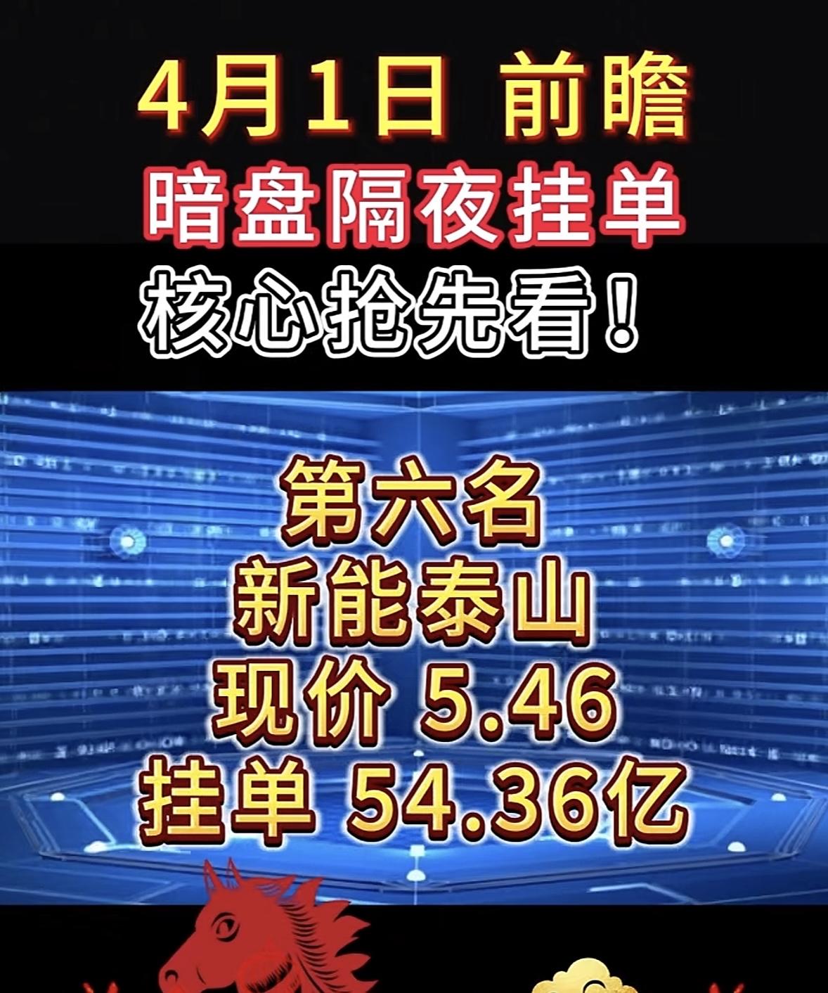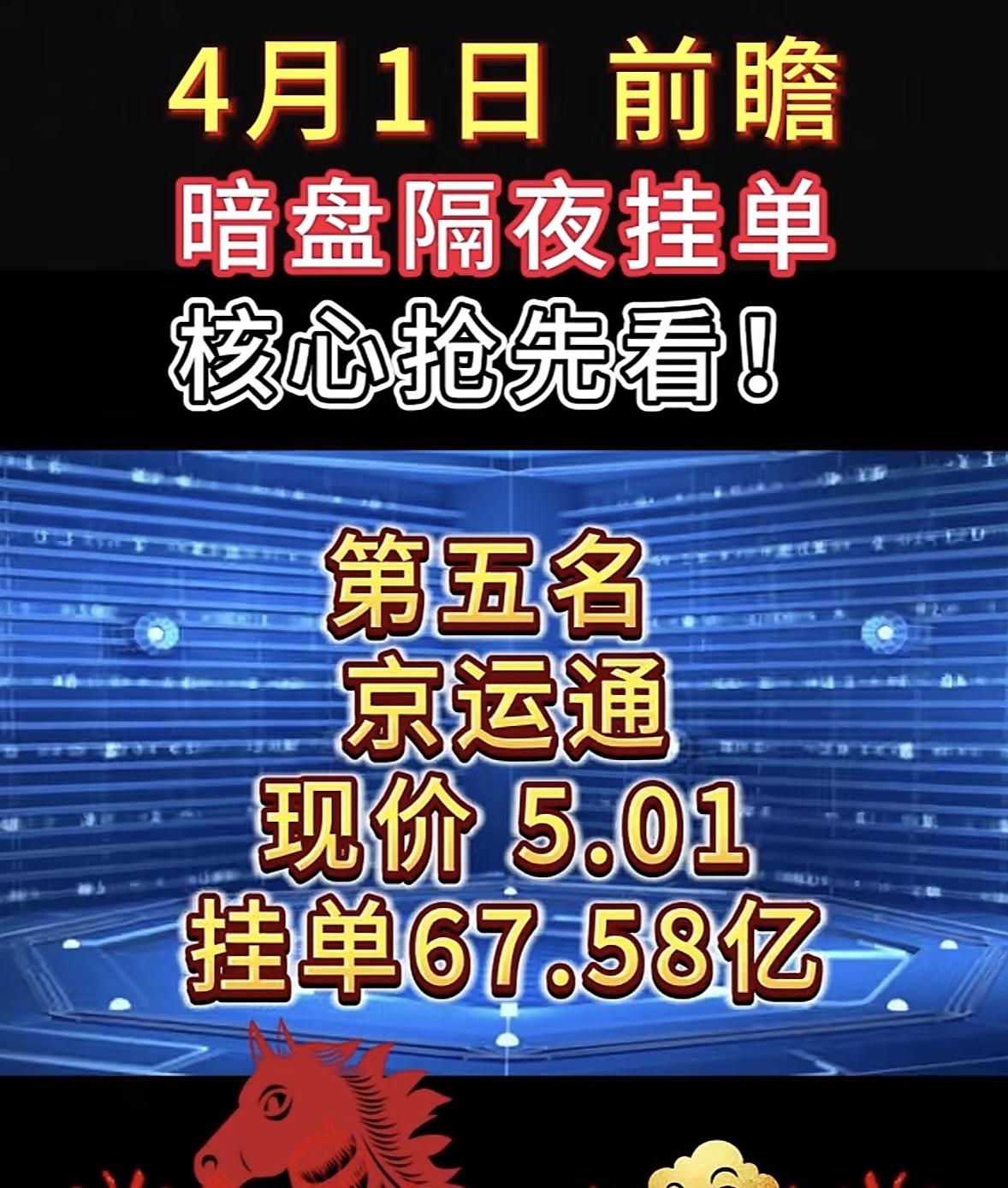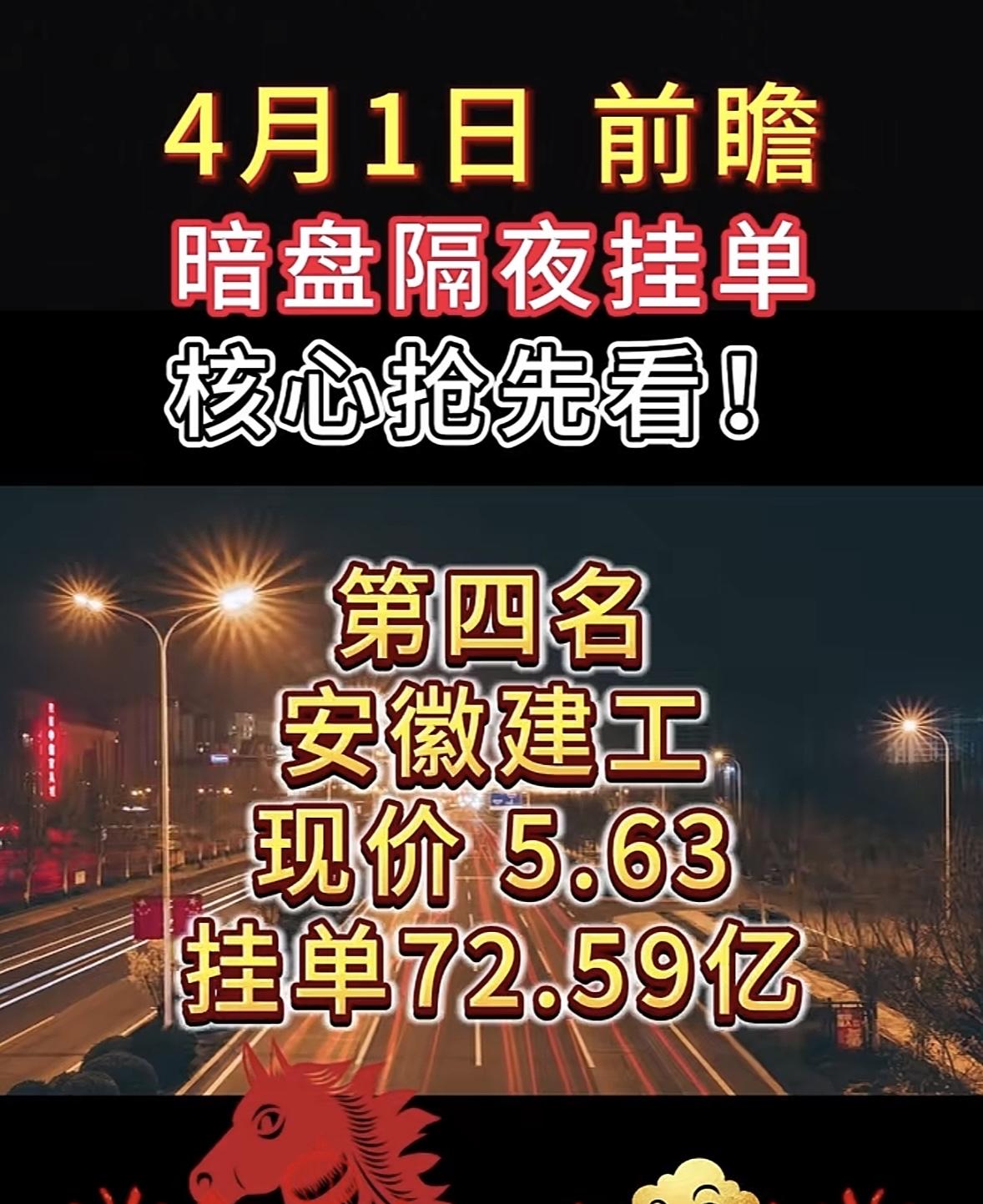 4月1日周三暗盘隔夜挂单排行榜揭晓 4月1日暗盘隔夜挂单可太有门道了!隔夜挂单就像股市版“熬夜排队抢票”,在当天股市收盘后提前提交次日买卖委托单,等第二天开盘集合竞价时统一报送至交易所。 不同券商系统开放接受委托的时间点不同,像招商、银河证券早的17:30就能挂,华泰、海通证券要到20:00。挂单后一直有效,到次日9:15集合竞价开始。其核心目的是抢时间、锁价格,应对隔夜突发消息。 第二天查看挂单结果,早上9:15集合竞价开始后,打开交易软件,重点看委托查询或当日委托栏目,显示已报或待成交,说明单子已提交。掌握这些,4月1日暗盘隔夜挂单就能抢占先机啦!