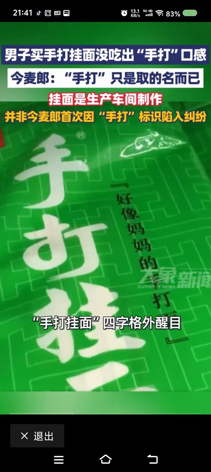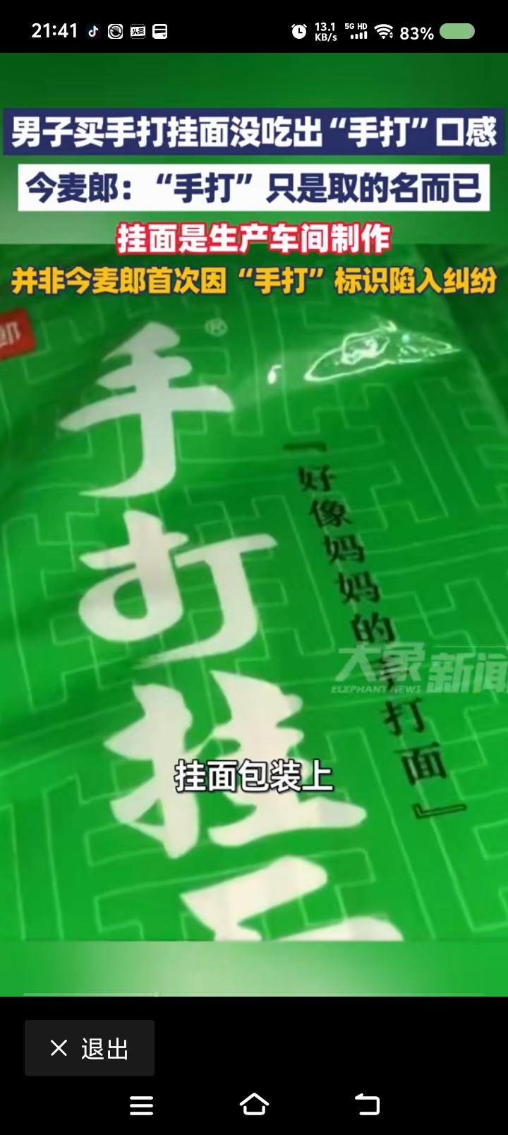 顾客单纯,还是商家违规?—— 据报道,一顾客购买某品牌挂面,因没吃出手工面口感,对包装上的宣传“手打面,好像妈妈的手打面”提出质疑。商家回应:“‘手打’是名称。” 点评: 呵呵。 我能说什么? 不要说挂面,就是饭店里的面,几乎都没有妈妈手工面的味道。 豆大叔说,“手打面,就是手工面,传统工艺。” 手工和面、擀面、切,中国有几家饭店能做到? 还有一点,面粉不是过去的面粉了。 所以,中国面食工艺一去不复返了! 至于挂面,何足道哉? 至于此商家,自个儿跟执法部门解释去! 悲哀!