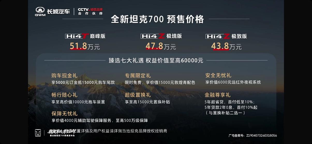 3月30日,全新坦克700开启预售,43.8万起,三个版本: 📮Hi4-Z极致