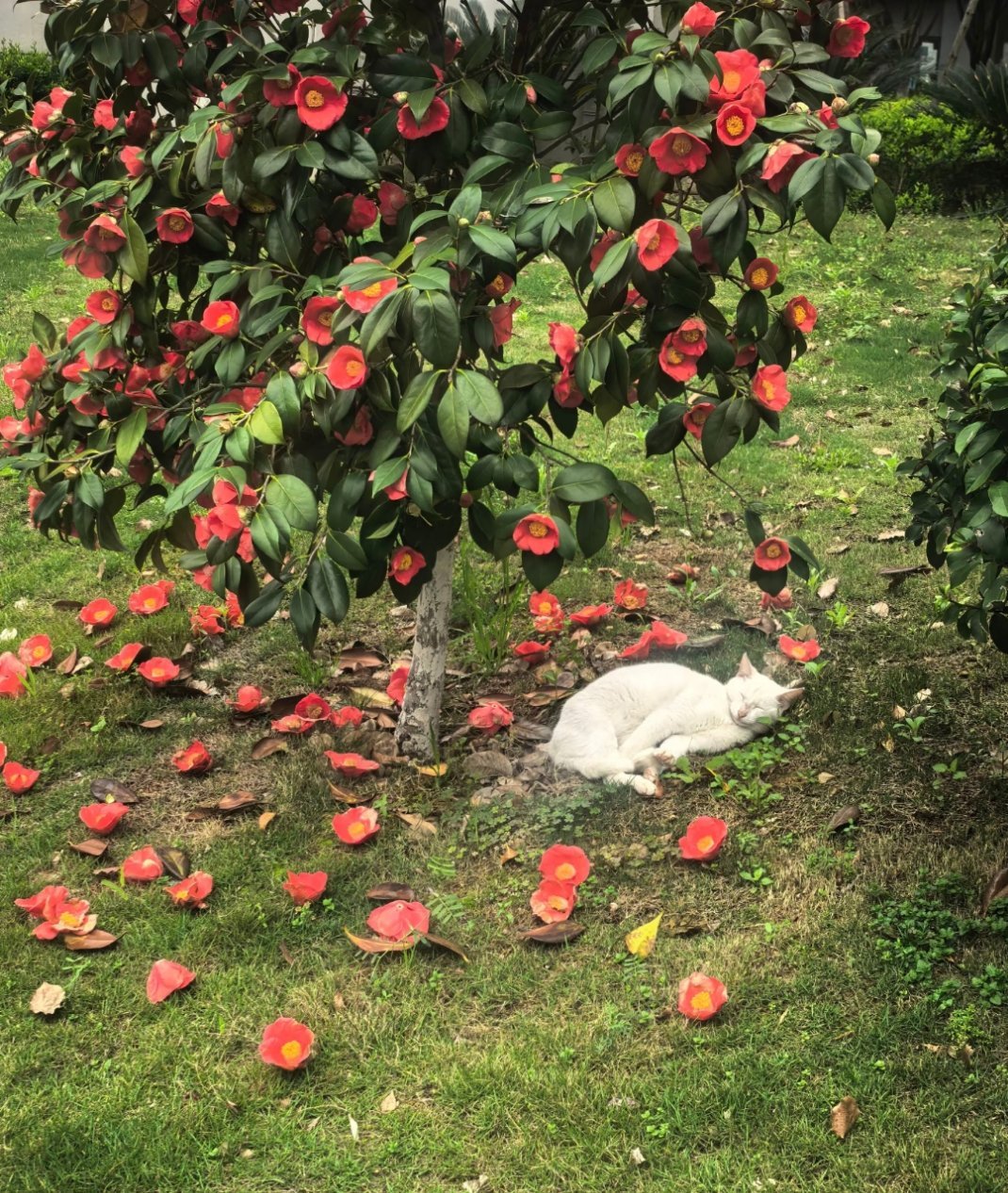 小猫咪 你是会睡觉的,狸奴小睡不知愁,忙添落花作锦裘