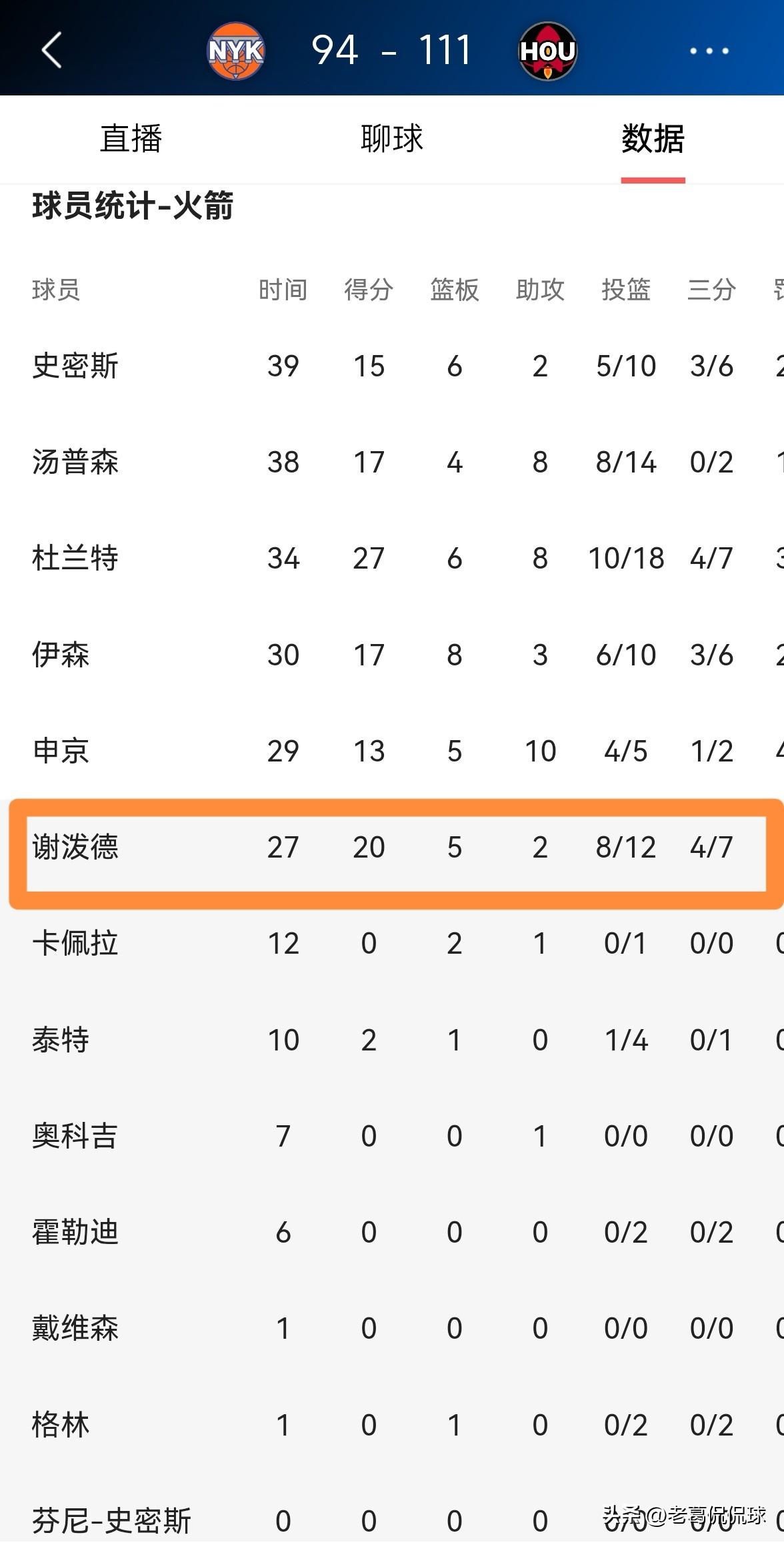 火箭小将谢波德真是太适合打替补了!在今天火箭主场以111:94大胜尼克斯的比赛中,谢波德在重回替补阵容以后仿佛脱胎换骨了一般,他在替补出战的27分钟里,投篮12中8,其中三分球7中4非常高效的砍下20分,外加5篮板2助攻2抢断1盖帽,他的场上正负值为+10。 事实证明,以谢波德目前的能力来看,他更适合打替补,当谢波德打替补的时候,他拥有更多的出手权和发挥的空间。