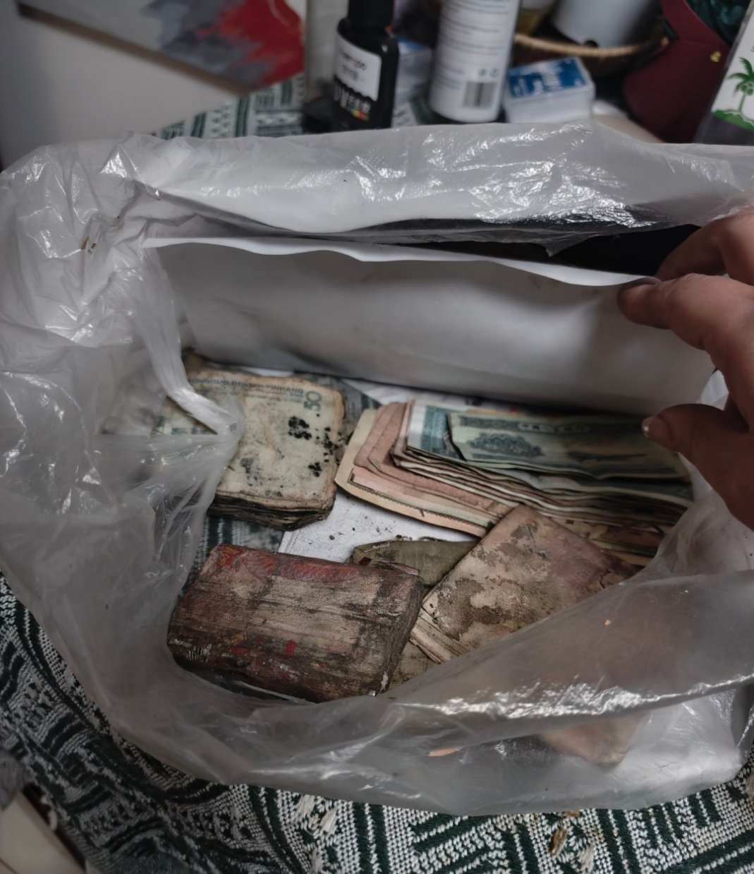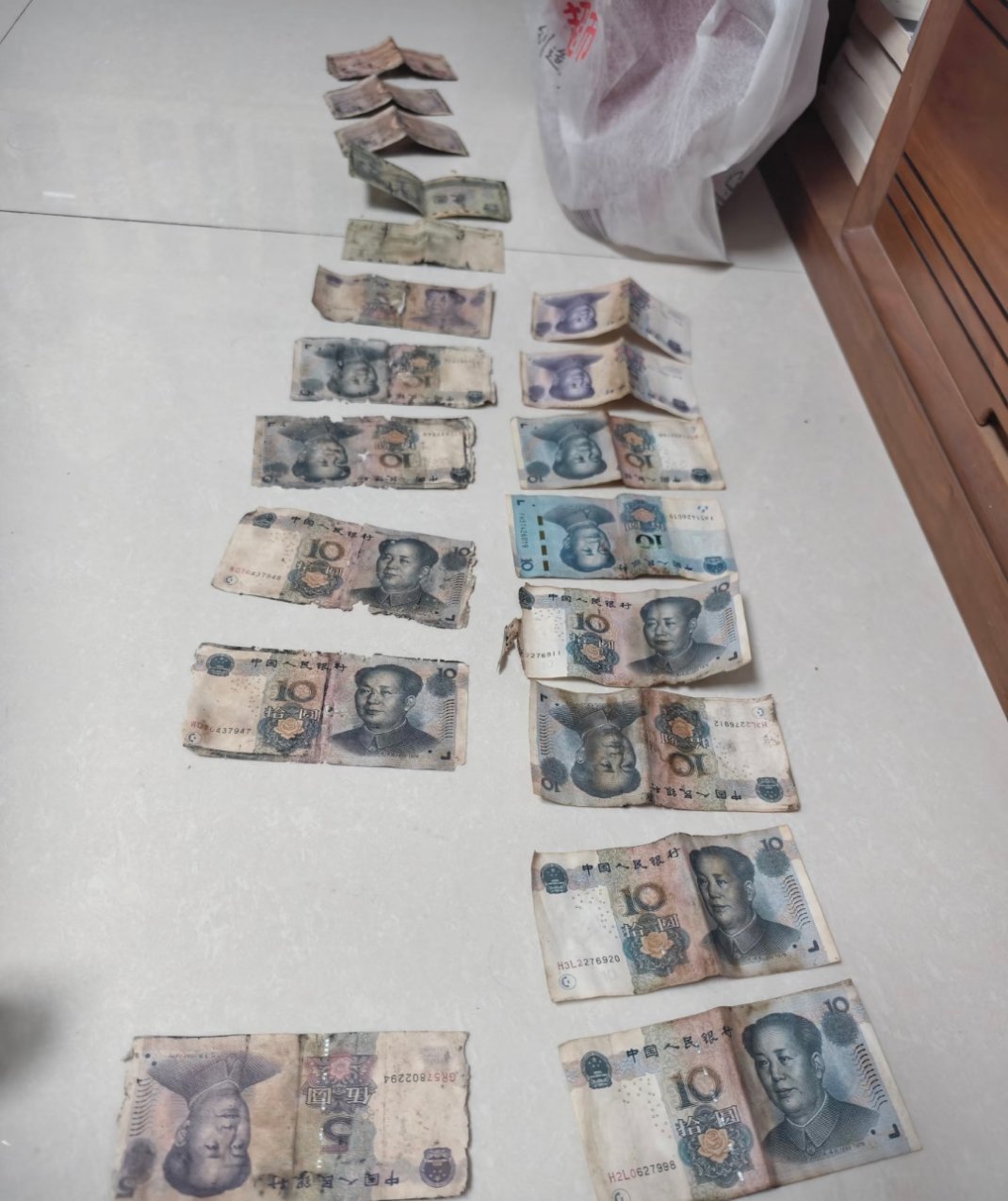 男朋友的爸爸妈妈辛苦攒的钱老两口省吃俭用攒的钱,压在家里炕下面,发现的时候已经粘在一起,交给我拆解了……