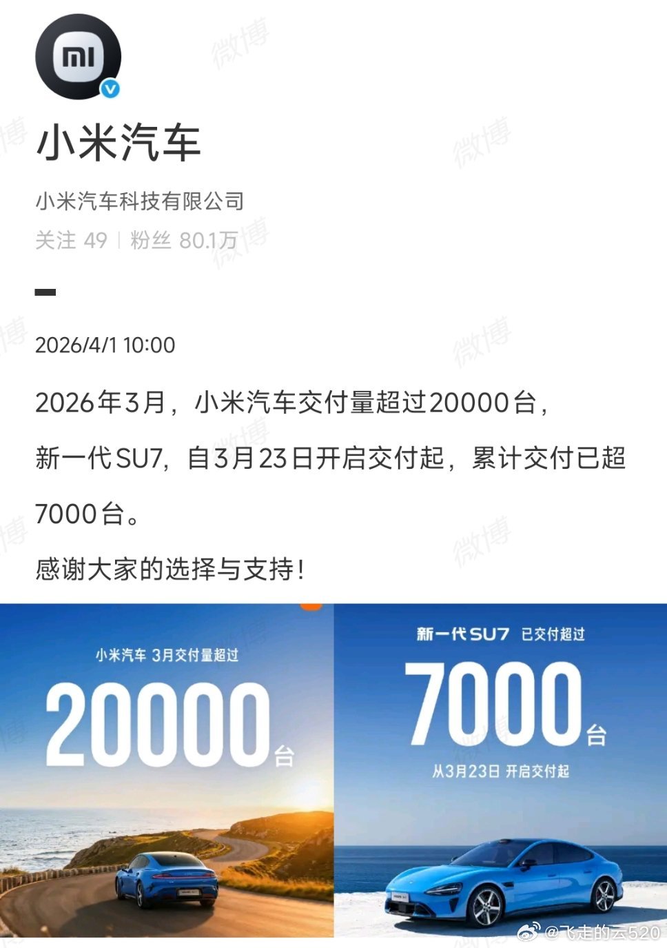 刚刚,小米汽车官博发了3月销量,速度真的快