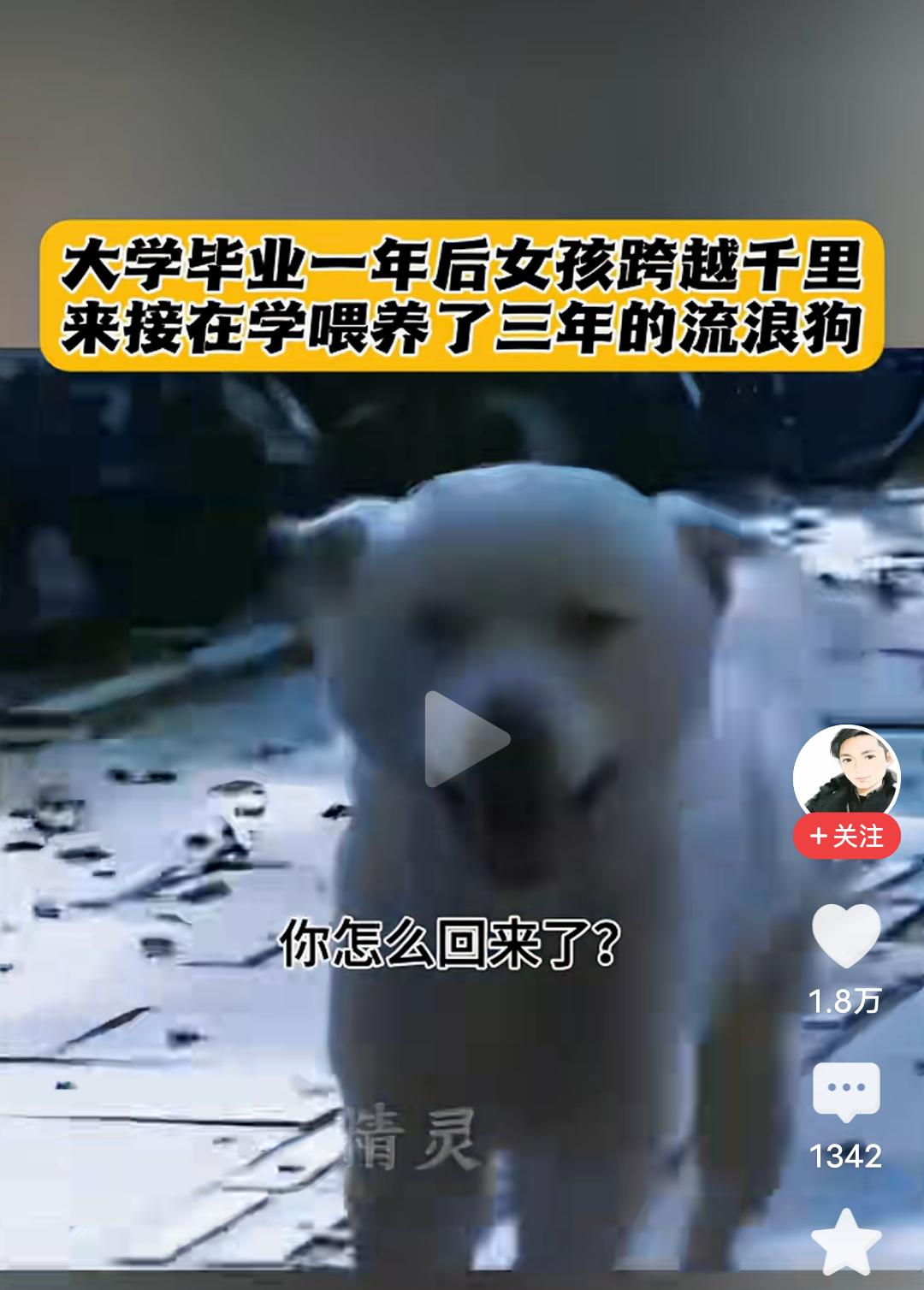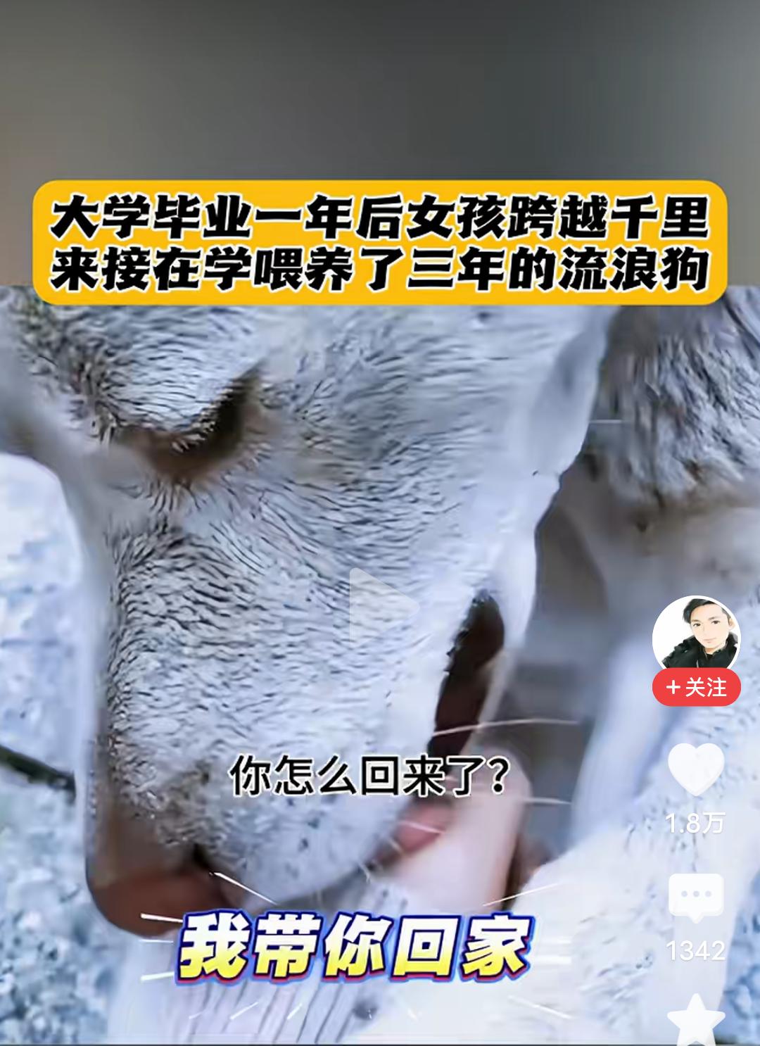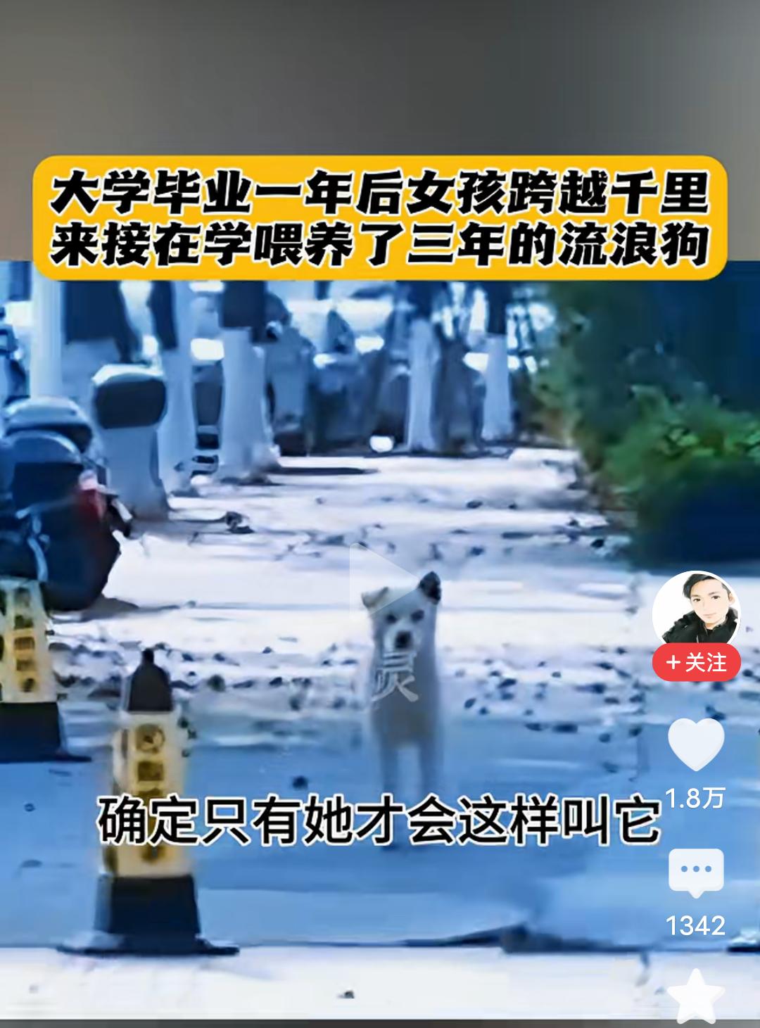一句“我来带你回家”,感动了无数人,也让我瞬间泪目! 大学女生上大学的时候,有一条流浪狗,她喂了它三年,她叫它小白,毕业后,她一直放不下那只狗狗,知道它无人照看。 毕业一年后,女生跨越千里,重返学校,她要接小白一起回家。 当她看到那只狗狗,叫它小白的时候,狗狗愣住了,好熟悉的声音,它不敢确认,愣愣的看着这个女生,当她再次小白小白的叫着的时候,它确定了就是她,因为只有她才会这么叫它,它欢快的摇着尾巴,以肉眼可见的开心向女生跑来。 小白奔到女生面前摇着尾巴似乎在问,你怎么回来了! 女生抚摸着狗狗的头说,小白,我来带你回家! 善良的女孩,一句我带你回家,让无数人感动落泪,姑娘的善良,胜过一切美貌容颜,从此以后,这只狗狗有了属于它的家。 其实修行就在路上,你救了它一命,给了它一个家,你一辈子都会有好报的!好人一生平安!