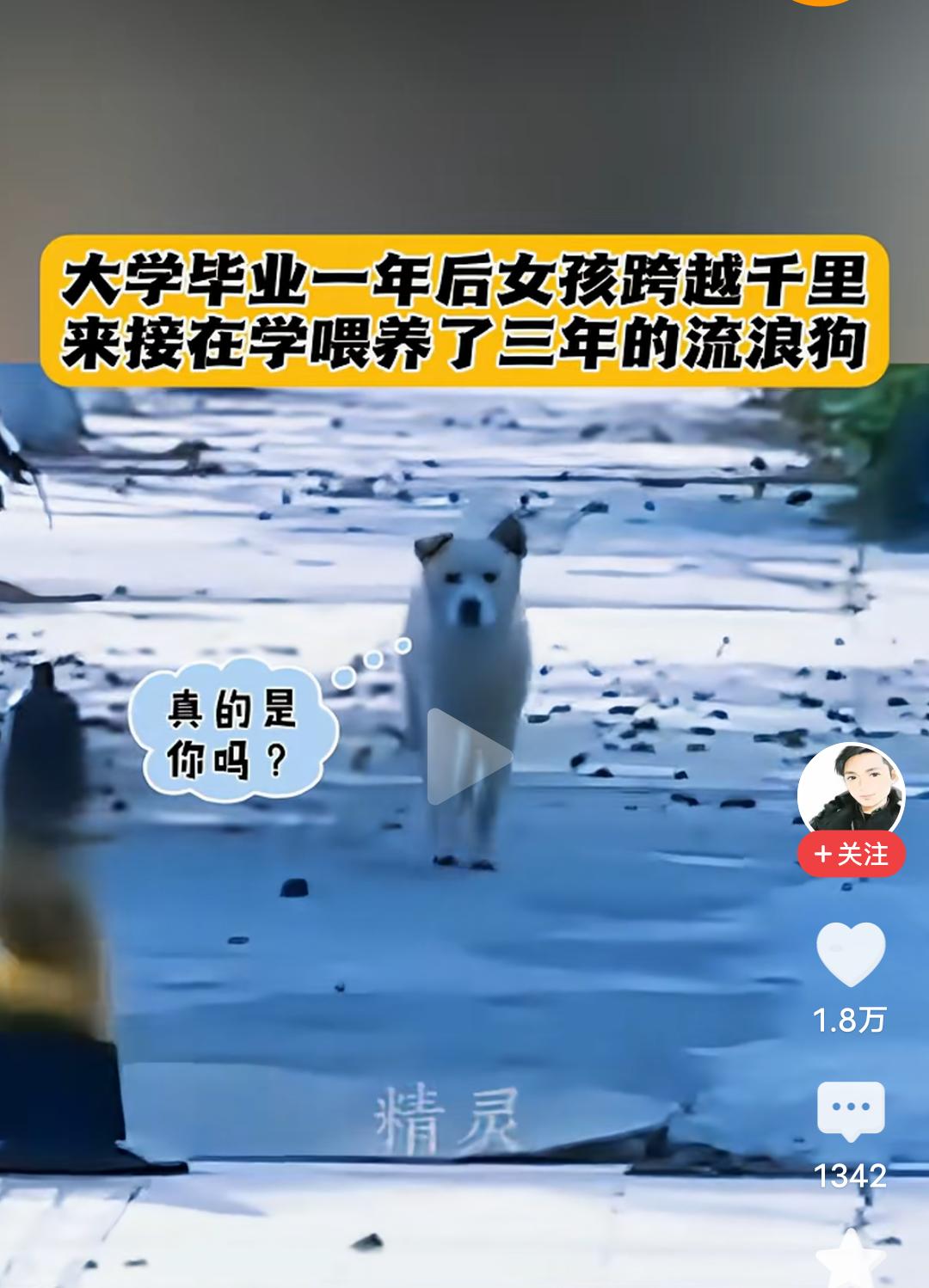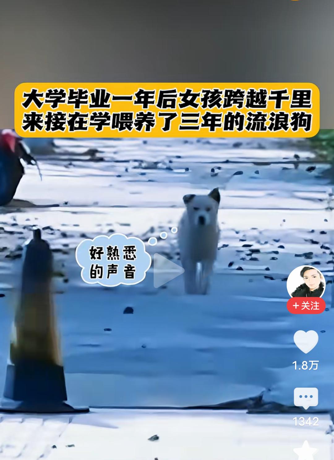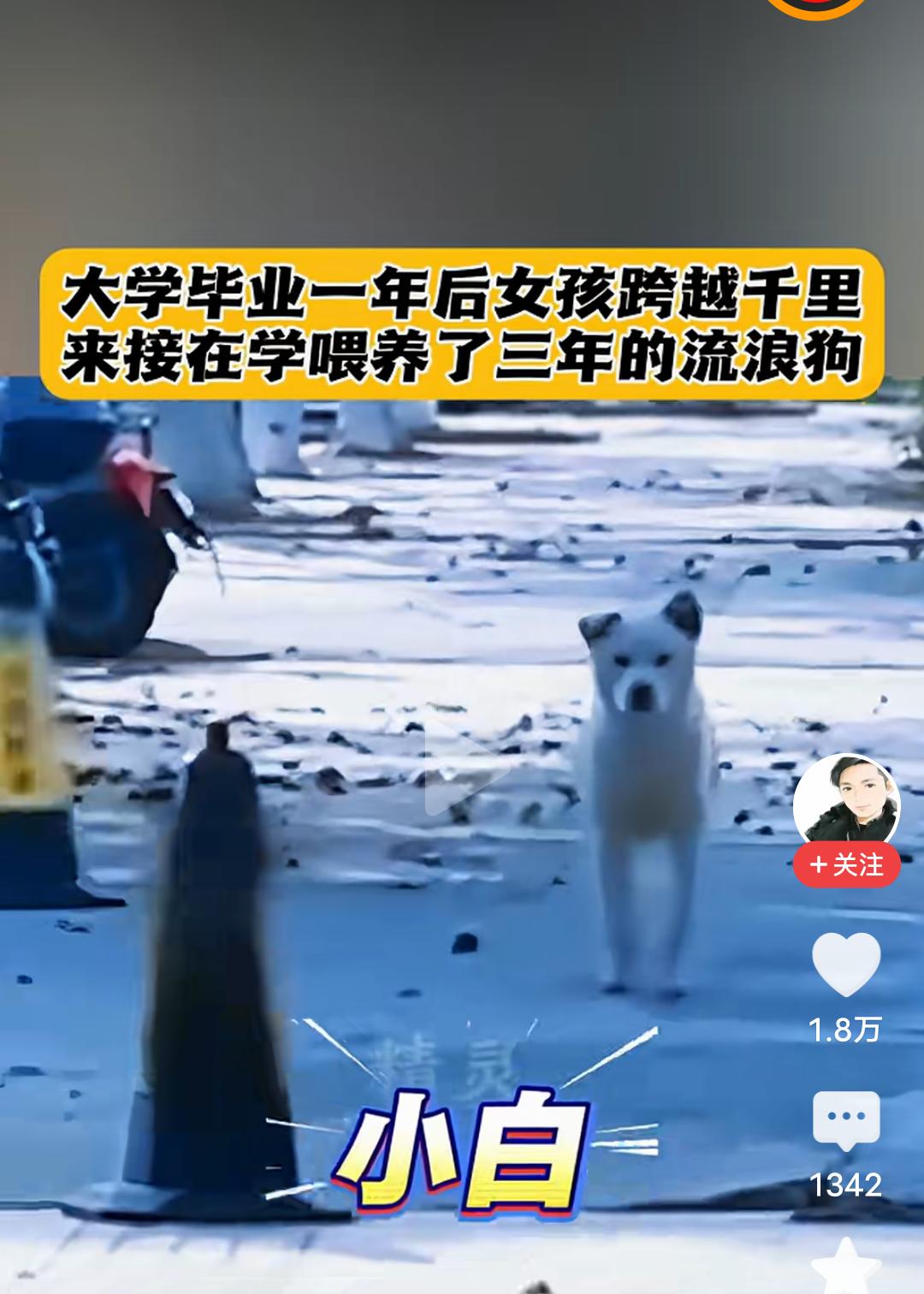 一句“我来带你回家”,感动了无数人,也让我瞬间泪目! 大学女生上大学的时候,有一条流浪狗,她喂了它三年,她叫它小白,毕业后,她一直放不下那只狗狗,知道它无人照看。 毕业一年后,女生跨越千里,重返学校,她要接小白一起回家。 当她看到那只狗狗,叫它小白的时候,狗狗愣住了,好熟悉的声音,它不敢确认,愣愣的看着这个女生,当她再次小白小白的叫着的时候,它确定了就是她,因为只有她才会这么叫它,它欢快的摇着尾巴,以肉眼可见的开心向女生跑来。 小白奔到女生面前摇着尾巴似乎在问,你怎么回来了! 女生抚摸着狗狗的头说,小白,我来带你回家! 善良的女孩,一句我带你回家,让无数人感动落泪,姑娘的善良,胜过一切美貌容颜,从此以后,这只狗狗有了属于它的家。 其实修行就在路上,你救了它一命,给了它一个家,你一辈子都会有好报的!好人一生平安!