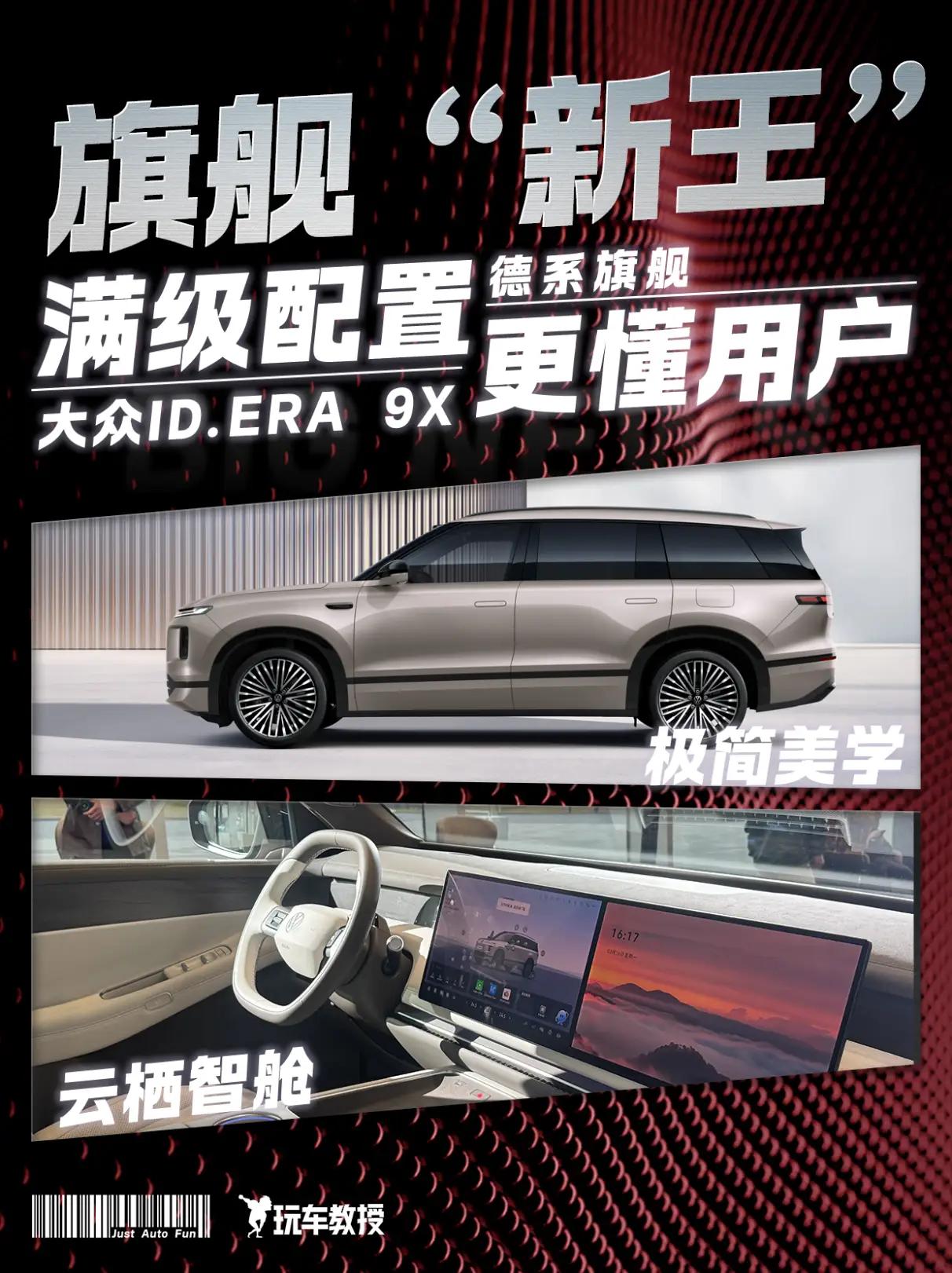 真是伤害性不大,侮辱性极强啊,正当13亿国人以为我们的新能源车已经全面实现弯道超车的时候,不成想被上汽大众一记重弹炸醒了! 大众首款增程旗舰ID.ERA 9X终于正式开启预售了,32.98万元起的价格,说实话看到这个定价确实让人有点意外。作为一台9系增程旗舰,能把起售价放在这个区间,对想买一台靠谱家用车的家庭来说,确实算得上是惊喜。 先说说外观。这台车用了大众最新的家族设计,封闭式格栅配上贯穿式LED灯带,晚上点亮之后那个发光车标辨识度很高。车身侧面用了隐藏式门把手,一是看着整洁,二也能降低风阻。21英寸的大轮毂让整车看起来很有气势。尺寸方面车长超过5米2,轴距3米07,这个体量放在那里气场确实足。后排开门角度能达到80度,家里有老人小孩的上下车会方便很多。全车设计了36处储物空间,带娃出门那些零七八碎的东西都能找到地方放。 内饰这块走的是环抱式座舱设计,座椅用的是NAPPA真皮,还通过了母婴级认证,摸上去手感很软。前排和第二排副驾侧都配了零重力座椅,加热通风按摩都有,跑长途的时候能舒服不少。隔音做得也挺到位,双层隔音玻璃一关,车里面确实安静。再加上四层环舱式氛围灯,晚上开车那种氛围感就有了。 智能化配置方面,车内支持九屏联动,中间那块15.6英寸的2.5K屏幕显示效果不错,后排还有21.4英寸的吸顶屏,家里孩子坐后面看个动画片什么的挺好。Smart Surface魔术屏平时隐藏起来,需要用的时候再唤醒,这个设计有点意思。智驾是全系标配192线激光雷达,配合行云智驾系统,城区领航、高速领航还有自动泊车这些功能都有,日常开车能省不少心。 动力系统是这台车最值得说的地方。EA211黄金增程系统,启动之后车里面噪音控制得很低,跑高速也很稳。油耗表现确实有说服力,吉尼斯世界纪录认证穿越青藏公路百公里平均油耗4.57升,这个数据对于这么大一台车来说相当难得。纯电续航406公里,综合续航能做到1651公里,还支持800伏快充,10分钟能补能210公里,长途出行基本不用担心续航问题。更关键的是即便在极限亏电状态下,依然能在高环跑道上维持高速巡航,这说明动力系统的稳定性是有保障的。 安全性方面,大众用的是自家安全4.0体系打造的,做过极限碰撞测试。车身刚性够强,超长侧气帘覆盖到位。隐藏式门把手还带了破冰功能,冬天遇到极端天气也能正常开门。首任车主给整车终身质保,这一点用着确实踏实。 30多万的预算,想找一台空间大、坐着舒服、能跑长途、安全性也有保障的家用旗舰,这台ID.ERA 9X确实值得好好看一看。