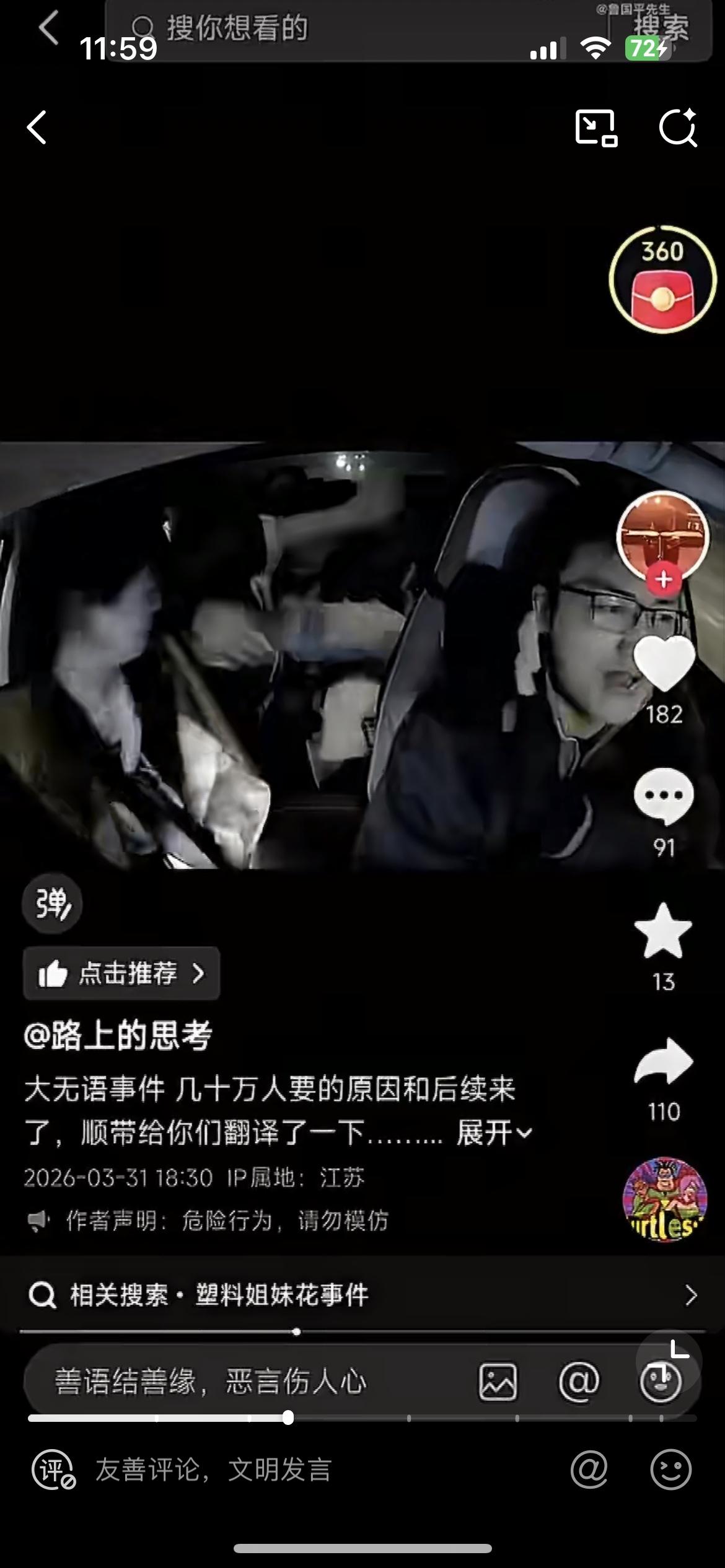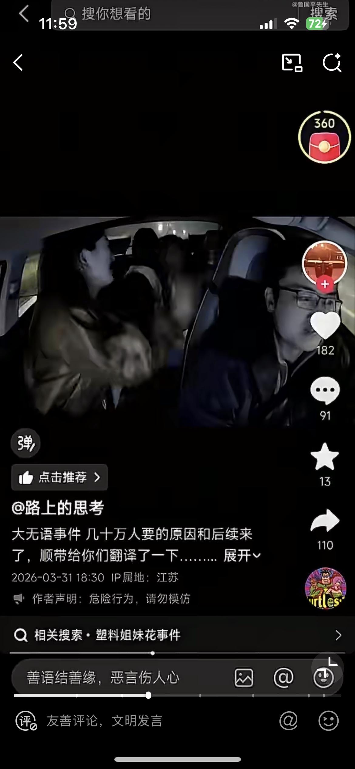真是奇葩,4 个小仙女坐网约车为谁付车费打起来了,真是丢脸。4 个小仙女在外面吃喝玩乐,夜深了,叫个网约车回家,在车上她们开始商量车费怎么支付,谁都不想当这个冤大头承担车费。其中有一个女的提议大家 AA,每人支付一部分,算来算去总有人觉得自己吃亏了,就要叫车的那个人出大头,其他的人出小头。叫车的人不干了,凭什么他出大头?要 A 大家就平摊。小仙女们越说越激动,动起手来,四人混作一团,打得不可开交。司机见状,赶忙把车停到路边。威胁她们说车上有监控全程录像,她们再打就把视频发网上。哎,这是什么塑料姐妹呀!几十块钱的车费都能打起来,没钱就不要出来玩嘛。