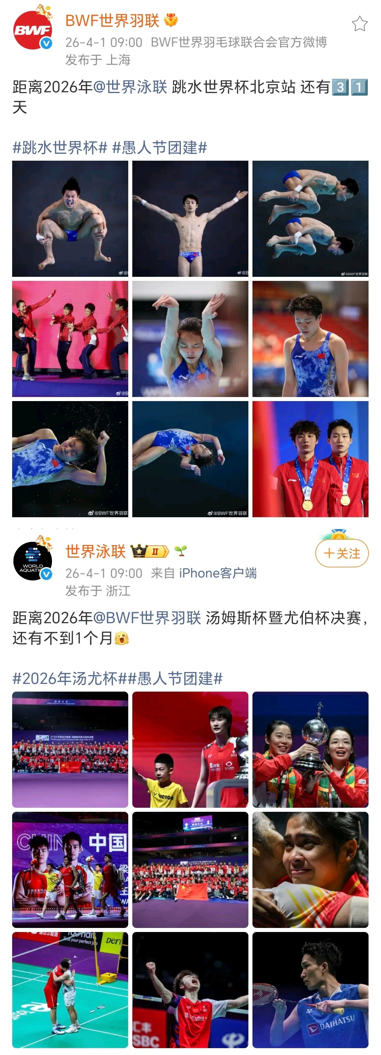 每年愚人节都坚持不懈卖麦麸的世界羽联和世界泳联,虽然是冷门但有饭