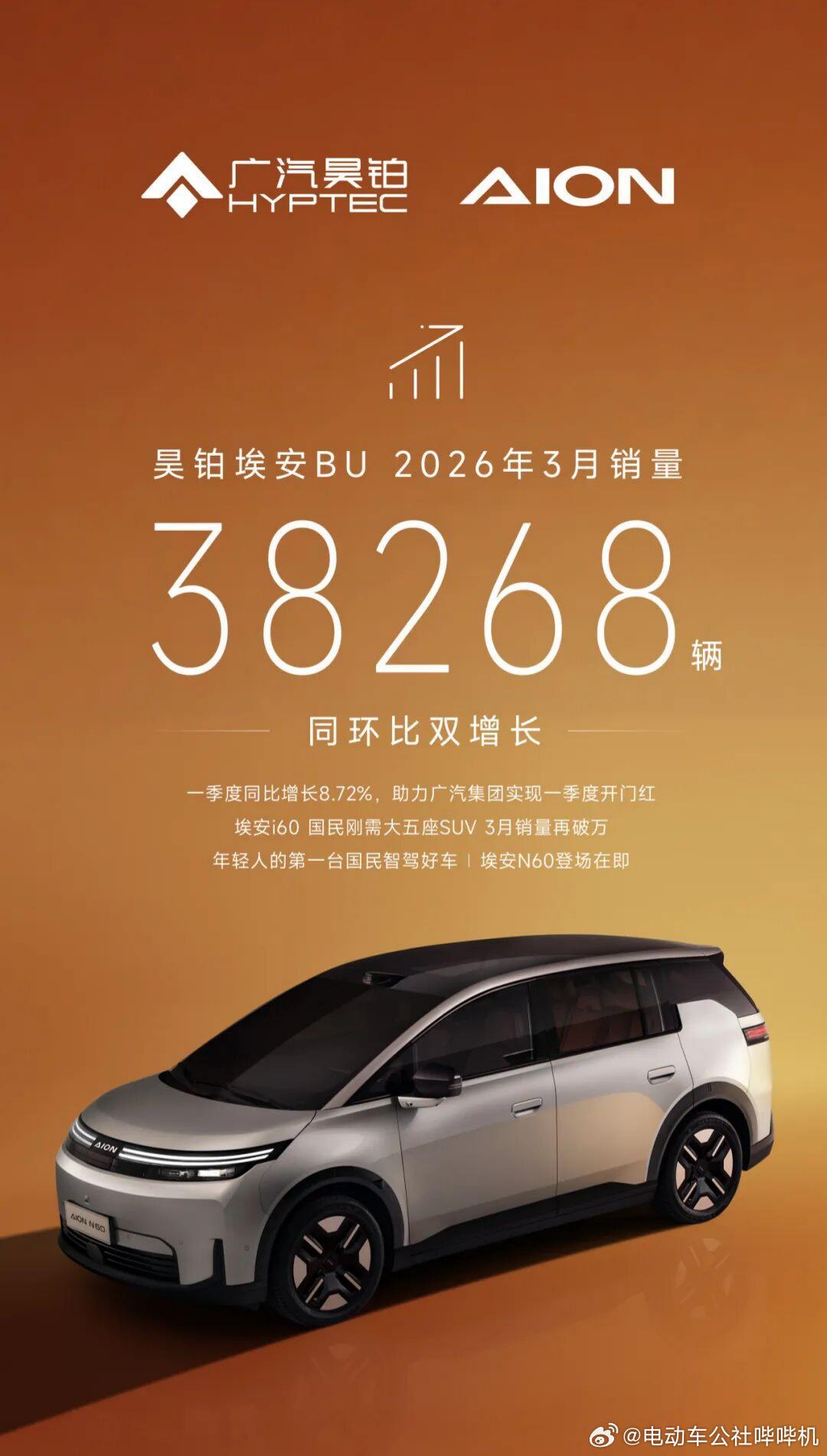 零跑3月交付50029台;智己3月销量7187台;埃安昊铂BU 3月销量38268台。