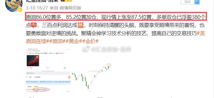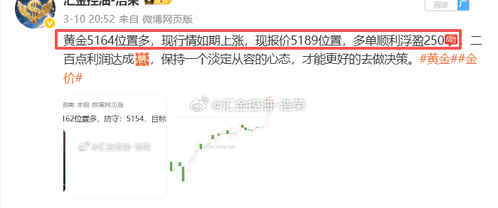 2026.3.10日操作4单,全胜!共收割1450点利润。投资制胜,无非两样:一是技术,二是心态。技术为你指明方向,心态决定最终成败。不必奢求每一次布局都尽善尽美,盈亏本是常态,得失皆是修行。投资就像一场远行,途中难免匆匆忙忙、迷茫彷徨。唯有沉下心、稳住神,方能拨开迷雾,看见前路。黄金 金价