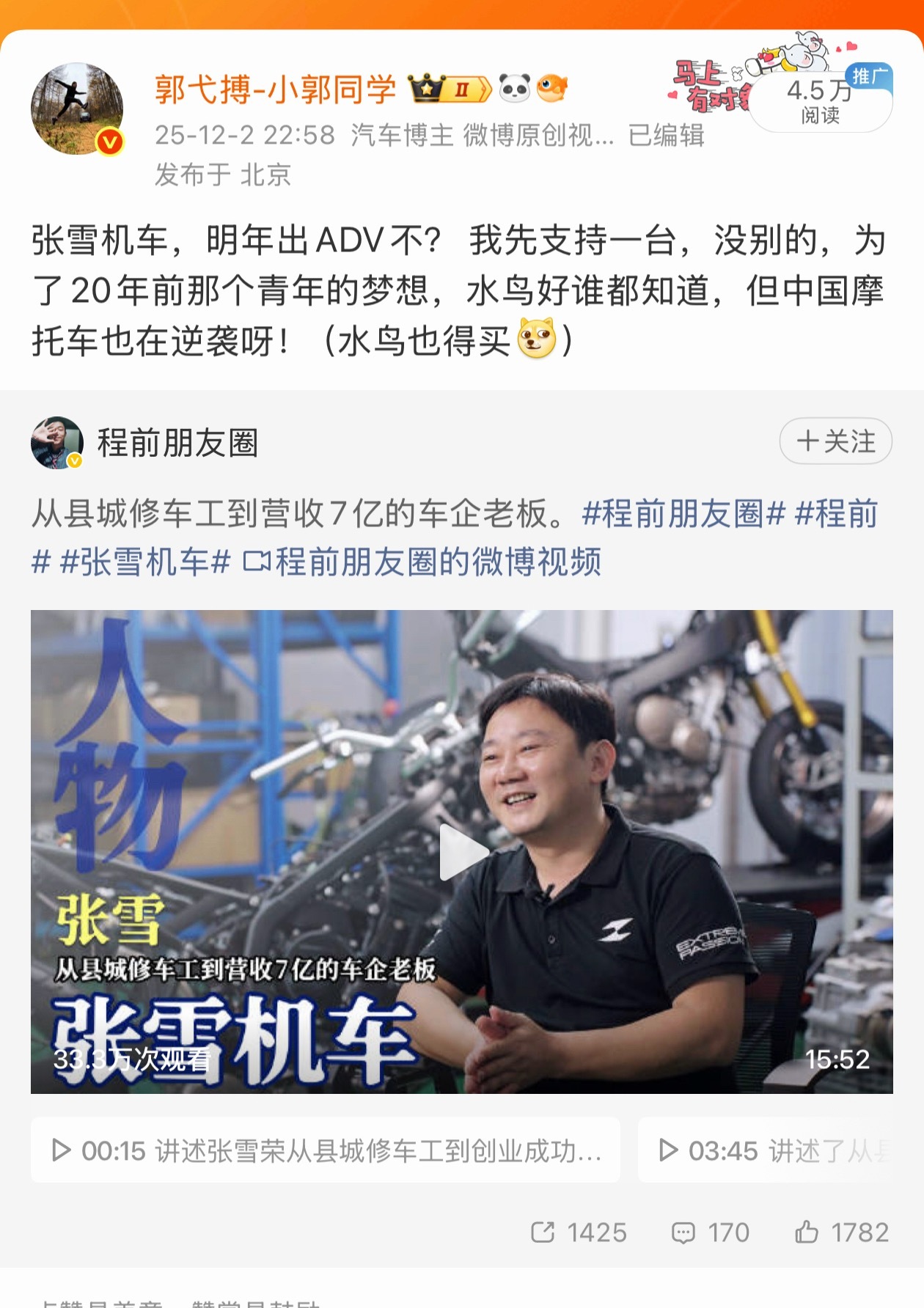 浙创投为张雪机车投资9000万张雪机车终于被大家看见了!卷起来!卷起来!春风、钱