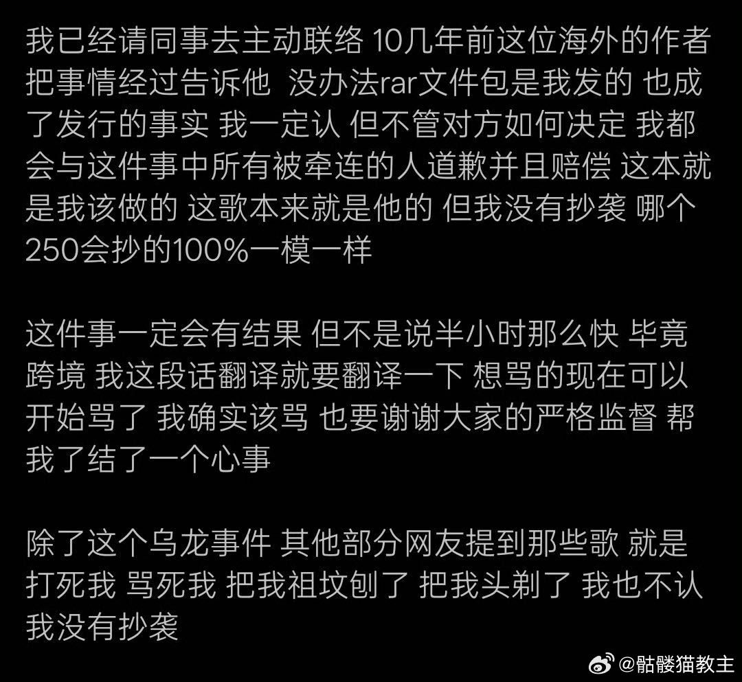 李荣浩 哪个250会抄得一模一样 身为创作者没必要冒这么大风险抄得一模一样,逻辑上根本说不通,明显是有人故意带节奏