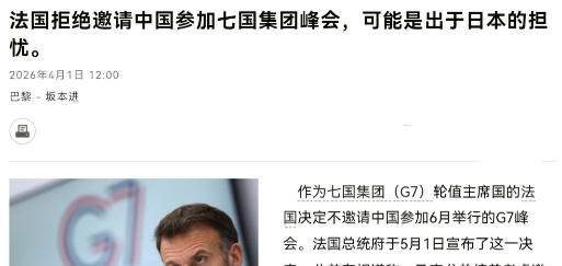 日本媒体强行给自己加戏了!日媒称,因为日本,法国已经正式拒绝邀请中国参加在法国举行的G7峰会!4月1日,根据日本朝日新闻报道,日媒称,作为七国集团(G7)轮值主席国的法国决定不邀请中国参加即将在法国举行的G7峰会。法国总统府于4月1日宣布了这一决定。 日本这波操作看似突兀,实则藏着小心思。作为G7里唯一的亚洲成员,日本长期扮演“反华传声筒”角色,靠炒作“中国海洋扩张”“经济胁迫”这类议题换取西方阵营存在感。一旦中国参会,日本精心构建的“对华统一战线”会瞬间崩塌,那些抹黑中国的谎言也得在当事人面前被戳穿。更让高市早苗坐不住的是,日本一直以“亚洲代言人”自居,垄断着对亚太议题的解读权,中国这个真正的亚洲大国入场,日本的人设会变得滑稽可笑。 法国这边其实有自己的盘算。G7这个上世纪70年代因石油危机诞生的机制,如今经济总量占全球比重跌至44%,制造业领域中国占比30%刚好与G7总和持平。马克龙想借邀请中国给这个日渐边缘化的机制注入真实全球代表性,同时解决国内经济增长乏力、公共债务高企的困局。空客订单、核能合作、金融开放,这些法国传统强项都等着他带回“中国方案”解渴。 但日本可不管这些。高市内阁摆出“主人”姿态,全然忘了G7峰会的规矩——轮值主席国才拥有邀请嘉宾的绝对主导权。日本外务省迅速反应,通过正式渠道向法国传达意见,强调邀请中国会干扰G7内部协调。日本外长更在记者会上放话:“G7的团结性最重要”,这番言论被媒体广泛报道,暴露了日本对问题的强烈立场。 法国起初并未让步。马克龙访华期间公开表示要深化中法伙伴关系,访问结束后还通过官方渠道重申多边合作的重要性。但日本持续施压,2025年12月中旬通过正式渠道警告法国,强调保持G7框架稳定至关重要。与此同时,美国国务院在华盛顿的意见交流中倾向于支持日本谨慎态度,北约也介入强调安全议题优先性,与日本担忧形成共鸣。 最终法国妥协了。2026年4月1日,法国总统府宣布中国不会出席G7峰会。这决定看似突然,实则早有端倪。法国在协调中日之间夹缝求生,既要应对日本施压,又要考虑美国态度。更关键的是,G7对华议题的政治化对立化愈发明显,邀请中国出席可能加剧矛盾,而非促进合作。 中国对此早有预判。G7本质是西方发达国家利益联盟,长期带冷战思维搞阵营对抗。今年G7外长会就曾无理要求中国“不许援助俄罗斯、不得改变台海现状”,明显干涉内政。中国秉持多边主义,更倾向“一带一路”、金砖等包容性平台,而非在G7这种西方主导的“审判庭”上浪费时间。 日本这波操作看似赢了面子,实则输了里子。高市早苗的“反华饭碗”被砸,日本在G7的亚洲代表地位动摇,精心打造的“桥梁”人设崩塌。更讽刺的是,日本一边炒作“中国军事威胁”,一边在台海问题上突破军事红线,公然宣称“台湾有事就是日本存亡危机”,违反一个中国原则和战后秩序。 法国东道主地位也受挑战。马克龙想借峰会展现国际影响力,应对国内政治困境,却因协调不力陷入被动。南非曾被邀请参会,后因美国压力被排除,法国连基本协调能力都被质疑。美国虽低调,但作为G7核心成员,其立场影响深远,法国不得不看其脸色行事。 全球格局早已重塑。中国与240多个国家和地区开展贸易,190多个国家和地区进出口增长,外贸朋友圈持续扩大。2025年中国进出口总值约45.47万亿元,稳居全球货物贸易第一大国,法国封杀令根本不会带来实质影响。欧洲政治家的底牌——空客、豪华汽车、奢侈品——高度依赖中国市场,断供只会让欧洲企业陷入困境。 历史早有定论。封闭排斥换不来霸权延续,开放合作才是生存之道。当东京纠结如何给中国“设限”时,北京和巴黎已在谈绿色能源、航空合作的未来。日本想靠绑架G7围堵中国,无异于螳臂当车。中国不参加G7峰会,不是冲动,而是战略选择——切断无效社交,专注自身发展,推动全球多极化格局形成。 这场G7峰会注定是一场空洞的政治剧。霍尔木兹海峡危机未息,依云莱班布下层层安保,老欧洲试图维护旧秩序,却不知自己早已身处四面漏风的危房。中国以自身发展推动全球变革,这种趋势任何人都无法阻挡。日本若继续沉迷对抗,最终只会品尝孤立与疏远的苦果。