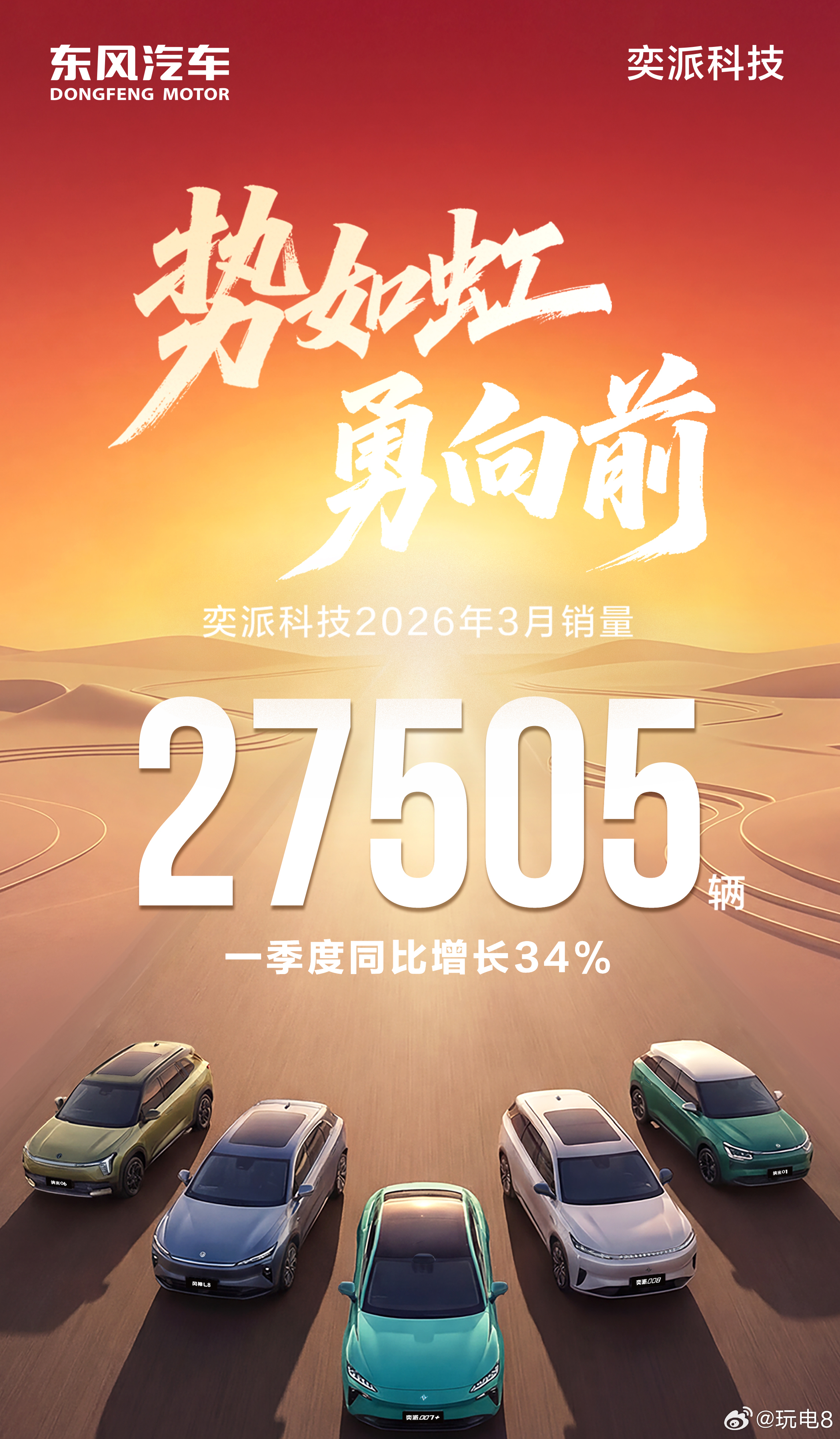 看一下,东风奕派汽车最新销量数据3月交付27505辆,同比增长30%;1-3月累