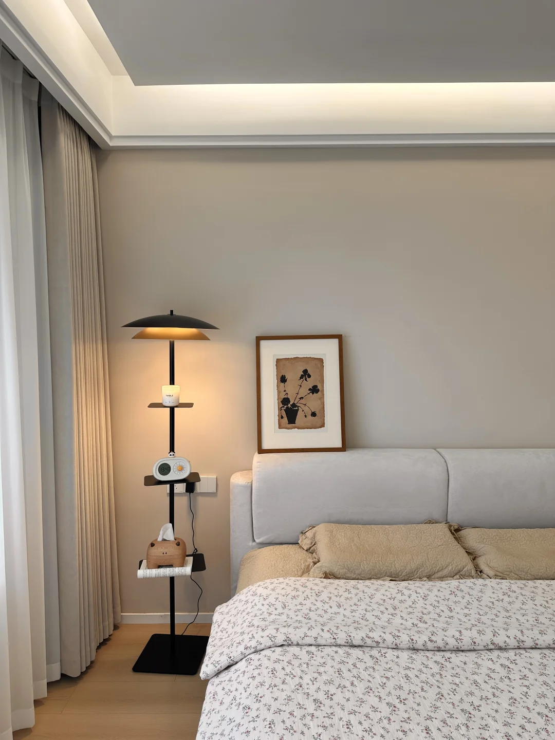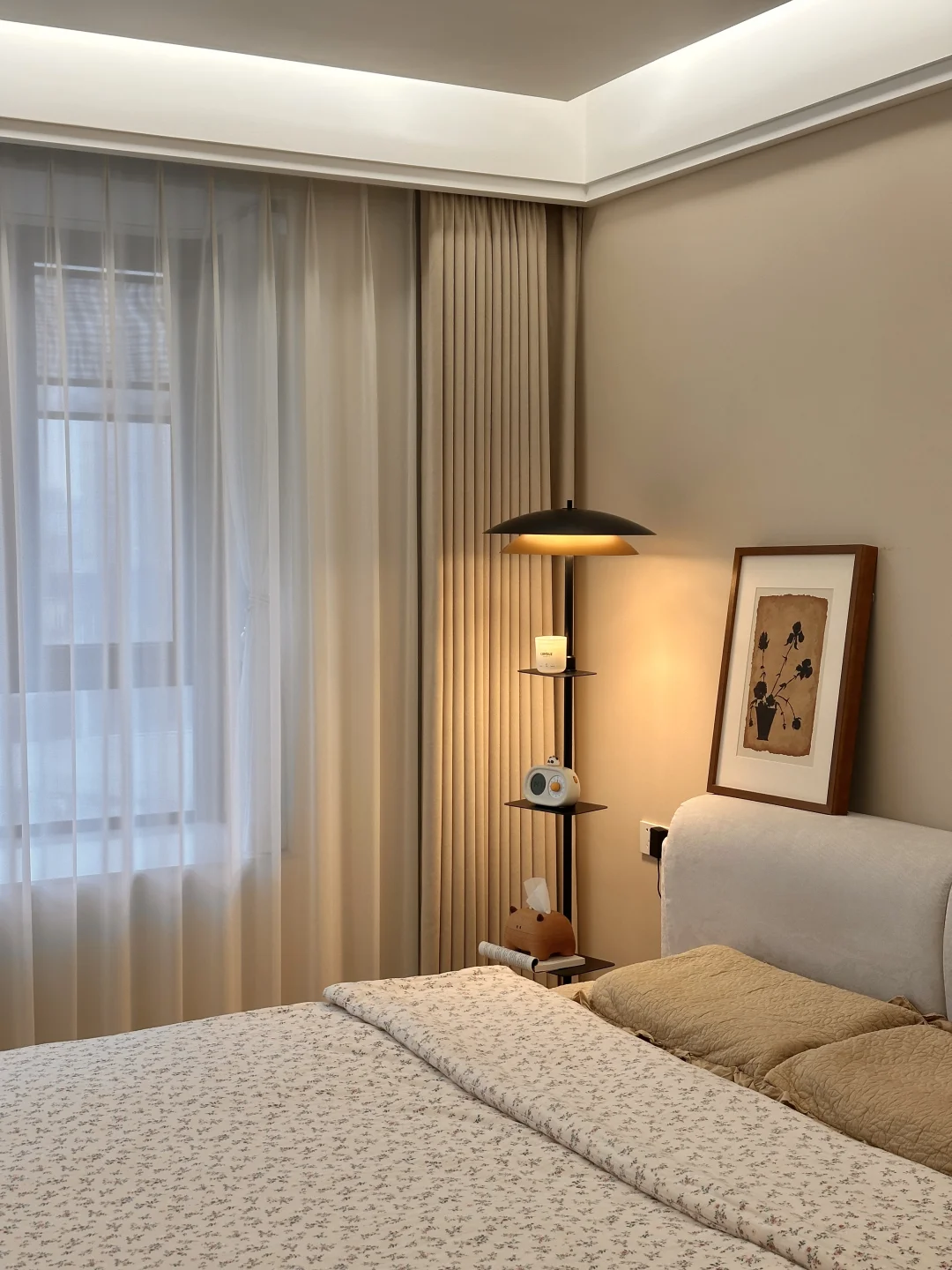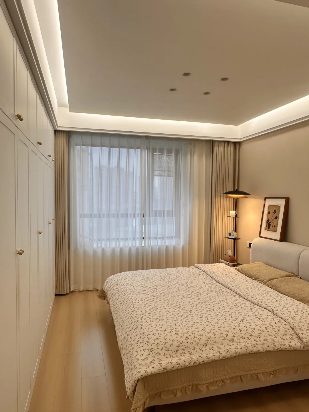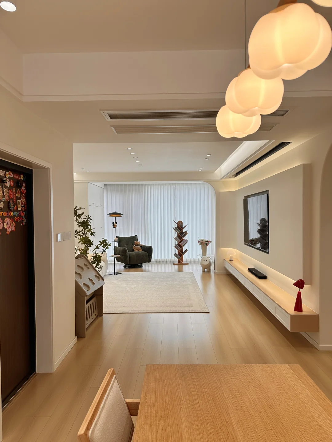 我的小家套内108,硬装花了15W,虽然是穷装,但还挺好看,宽敞的客厅,奶呼呼的沙发,一块舒服的地毯,挪菲落地灯散发着温柔的光,整个客厅都暖了起来,自带三层置物架,放在卧室也是很适配的,氛围感直接拉满~