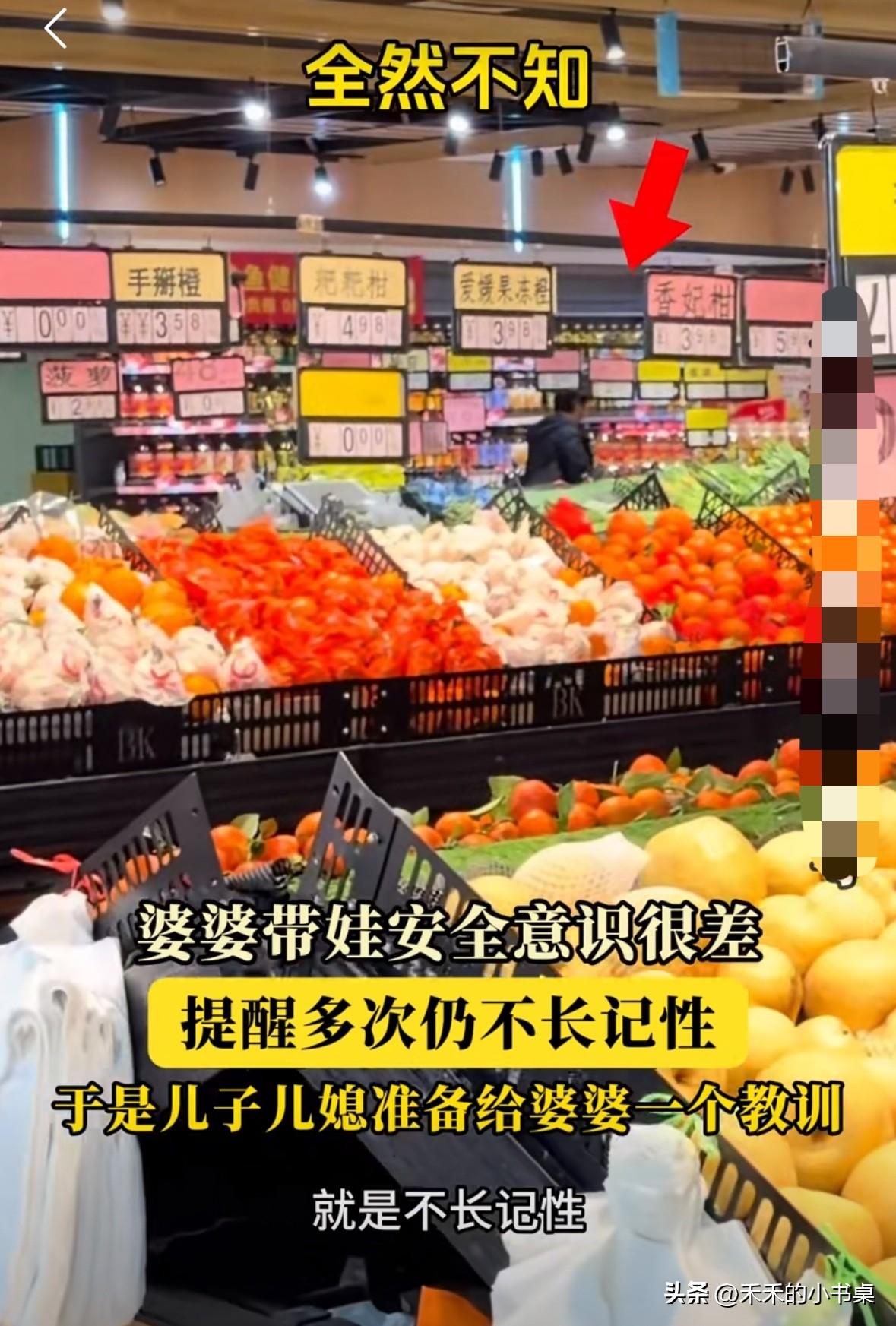 婆婆带着孩子去超市买菜,没想到婆婆把孩子扔在一边,自己却在慢条斯理的选菜。 儿媳说:“跟她说过很多遍了,不要让孩子离开你的视线,就是不听!” 这次儿媳妇抓住机会,想教训一下婆婆,于是就偷偷的把孩子“偷”走了。 过了一会,婆婆发现孩子丢了,吓得腿都软了,到处寻找。 这下可长教训了,下次不敢把孩子乱丢了!