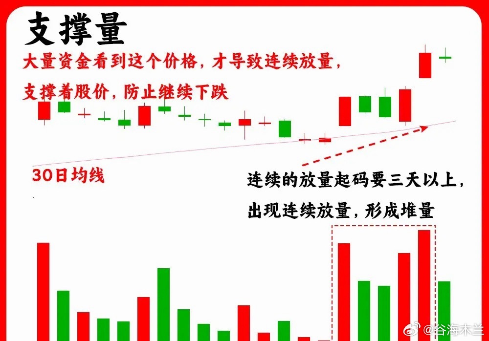 注意了!这是成交量的高阶形态,我们常见的成交量形态是倍量、天量、扩张量等等,但是今天分享的六种形态,大部分人都不知道,想聊透他的人就更少了。如果你也喜欢技术分析,那这成交量形态一定要知道。还是老规矩,点赞收藏或评论888支持一下,,我每天分享炒股干货,以免以后想温习找不到了一、草丛量是指成交量的形态,一下大一下小,没有规律,放量缩量随机出现,说明此时的市场没有明显的趋势,市场的分歧比较大,买和卖的筹码都比较多,这种的量柱在低位出现,说明主力并没有吸筹二、凹洞量整个成交量形态,像一个V字形,成交量逐步的缩量,形成地量,随后成交量又出现放大,左右高,中间低。这一般是主力洗盘过后,缩量,代表市场抛压开始变弱三、支撑量股价在回调的过程里,在重要支撑位附近,比如前期低点、平台等等位置,出现连续的放量,形成量堆。股价在支撑位附近开始止跌企稳,没有跌破支撑位。说明下方的承接力量比较强四、防守量股价在上涨趋势的中继。成交量出现缩量,是上涨趋势中成交量的一半以下,缩量代表主力锁仓,并没有出现主力出货。五、攻击量股价在低位,成交量出现倍量,是平日成交量的两倍以上,还会连续出现,同时股价也同步上涨,形成趋势。说明多方力量比较强,,而且很容易突破上方压力位六、 稀释量一般出现下跌趋势当中,上方有不少套牢盘,股价开始逐步的缩量,股价缓慢下跌,也就是我们常说的阴跌。让上方筹码,在慢慢稀释,筹码下移的一个过程好了!以上就是成交量的六种高阶形态,下方我准备了对应的案例图,了解透彻成交量。希望对大家有启发,也是最为基础的内容,一定吃透。我们下期内容再见