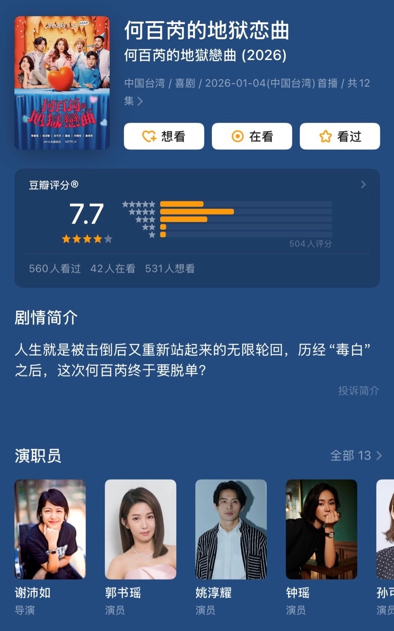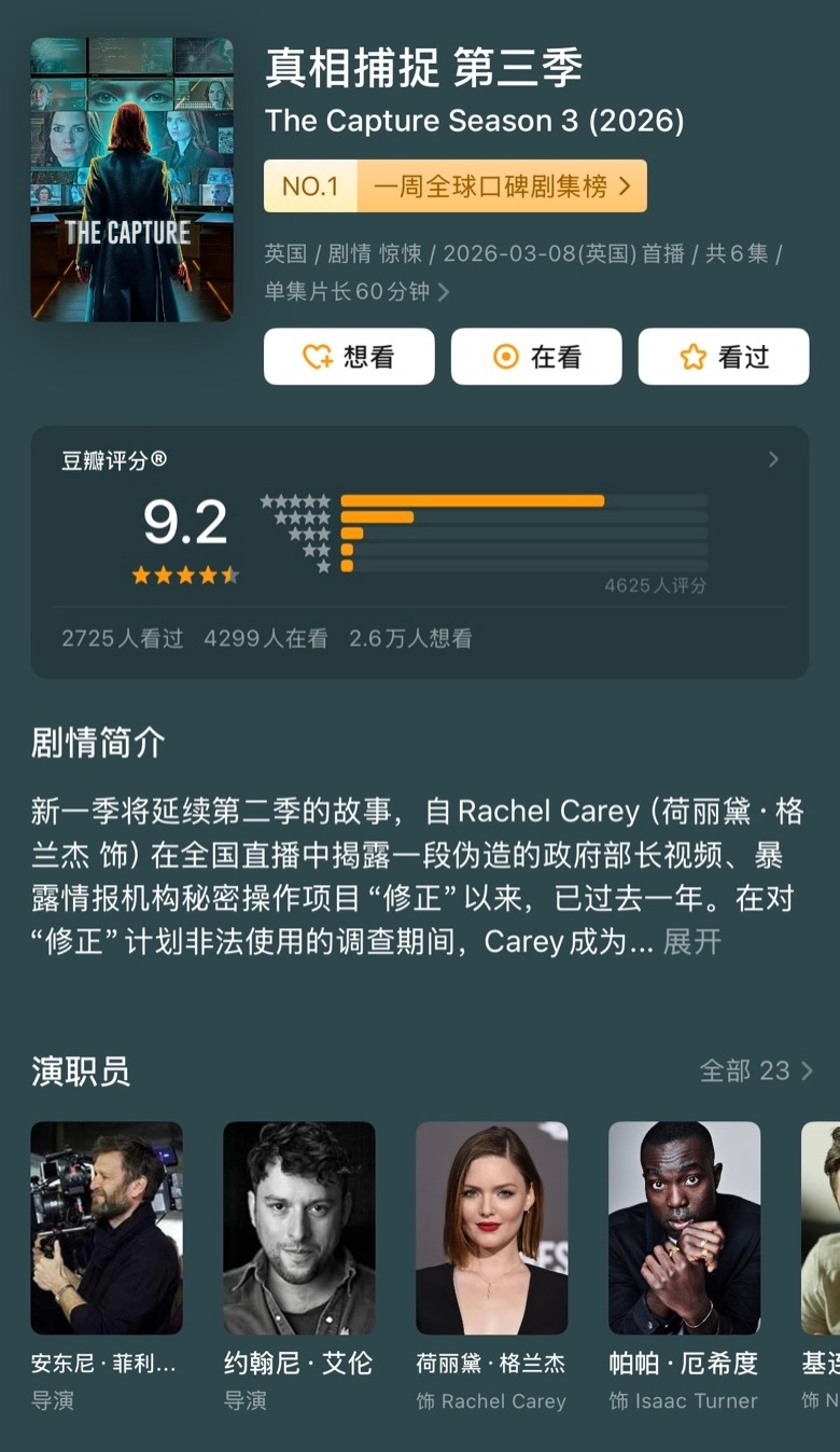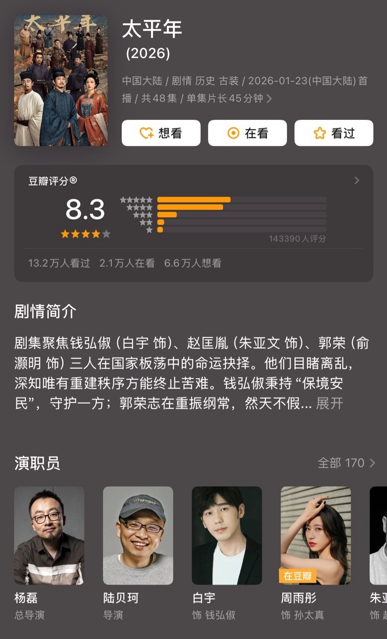 1/4📺2026年第一季度的豆瓣高分剧集:最高分国产剧:《生命树》《太平年》最高分港剧:《正义女神》《非常检控观》最高分台剧:《何百芮的地狱恋曲》最高分韩剧:《爱情怎么翻译?》最高分日剧:《丰臣兄弟!》最高分美剧:《匹兹堡医护前线》第二季最高分英剧:《真相捕捉》第三季最高分泰剧:《心动密码》