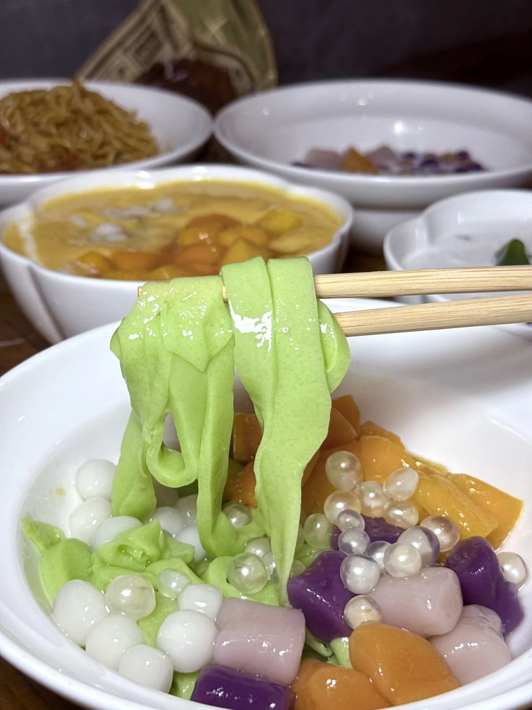 绿色的斑斓河粉看起来就很有食欲