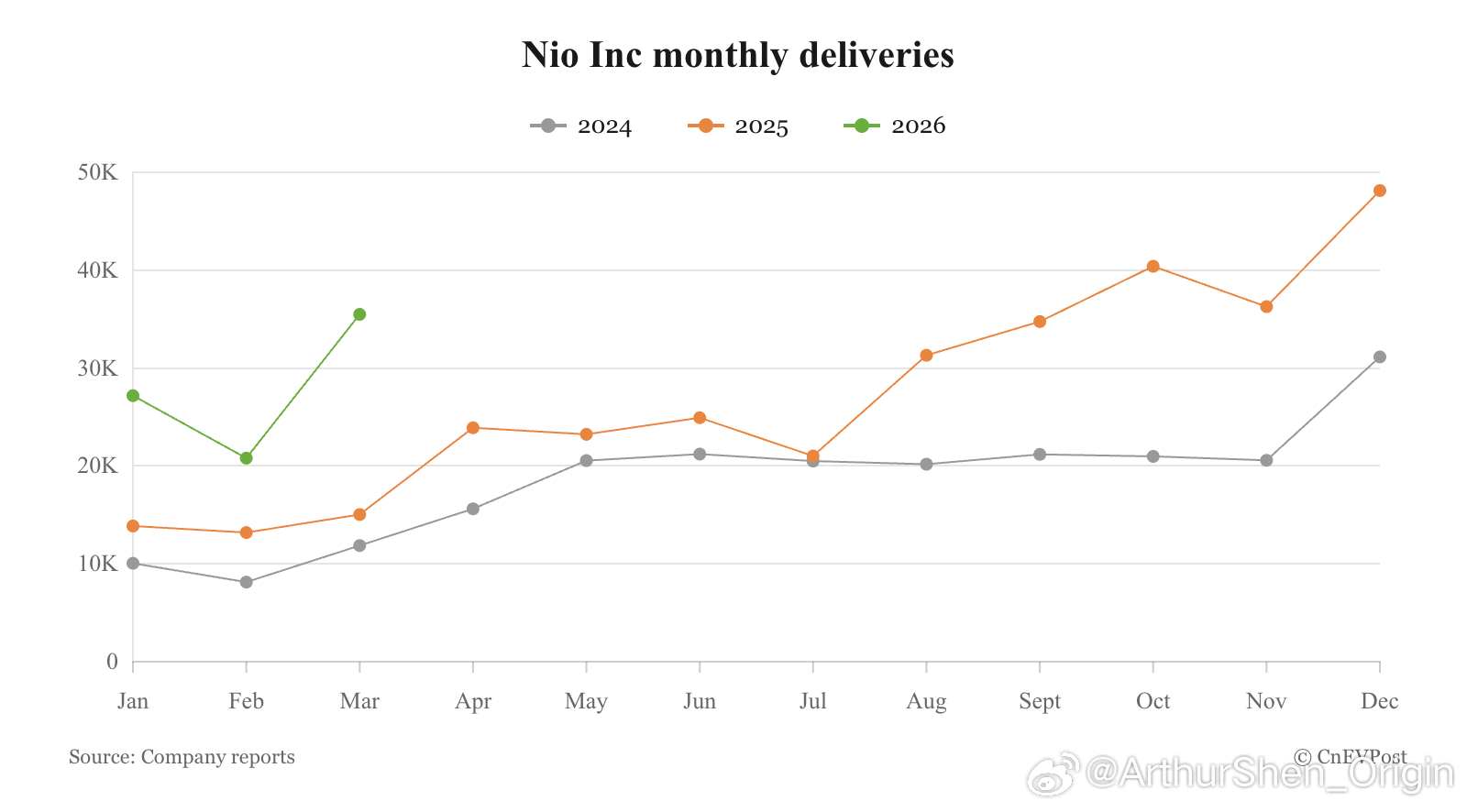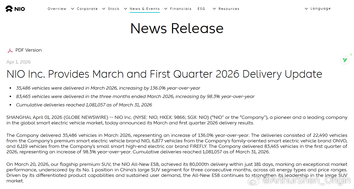 蔚来公司3月交付35,486台新车。(图1)