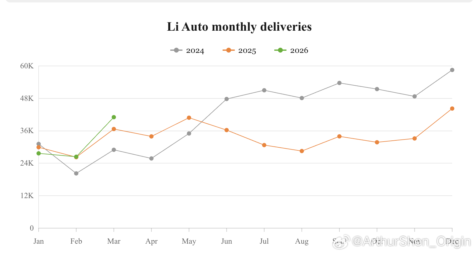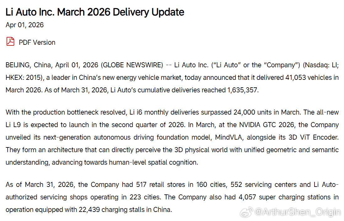 理想汽车3月交付41,053台新车,其中有超过2.4万台是i6。(图2)