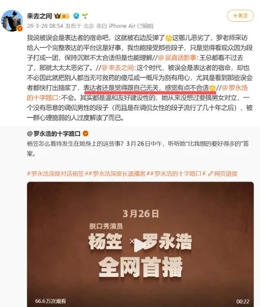 “江湖”纷争,总要有一位出来“摆事儿”的,老罗这次可能真踢到铁板了!因为,“真大佬”下场了。 微博CEO下场委婉提醒:表达者有被误会的宿命,但别把所有人都当傻瓜。这话说得客气,但分量不轻。老罗赖以翻身的根本,不是流量数据,而是“交个朋友”的那份信任。当“彪悍”变成了对支持者的轻蔑,“真实”变成了对异见的粗暴标签,这份信任就开始龟裂。 力挺杨笠的狠话放出去没几天,第一波真实的回旋镖就扎进了自家直播间。听说有些被惹毛的网友,直接玩起了“下单、发货、退货”的连环招,表面是捧场,实则是要让他实实在在肉疼。物流、包装、人工,每一笔退货都是真金白银的损耗。这可比在评论区骂一万句“取关”狠多了。 数据面上,老罗嘴硬说涨粉了,播客播放量也冲上新高。但这热闹能持续多久?当支持者和反对者都在为他吵上热搜时,他或许觉得自己又赢了一次流量游戏。可品牌方和商家们看在眼里,怕在心里。今天网友能为了泄愤冲直播间,明天就能用同样的逻辑抵制他代言的任何产品。英特尔、奔驰、京东的前车之鉴并不远,哪个金主愿意长期绑定一个随时可能引爆对立的“火药桶”? 流量可以计算,但人心和商誉,经不起这样反复透支。这波争议,他收割了热度,但可能正在输掉更重要的东西。