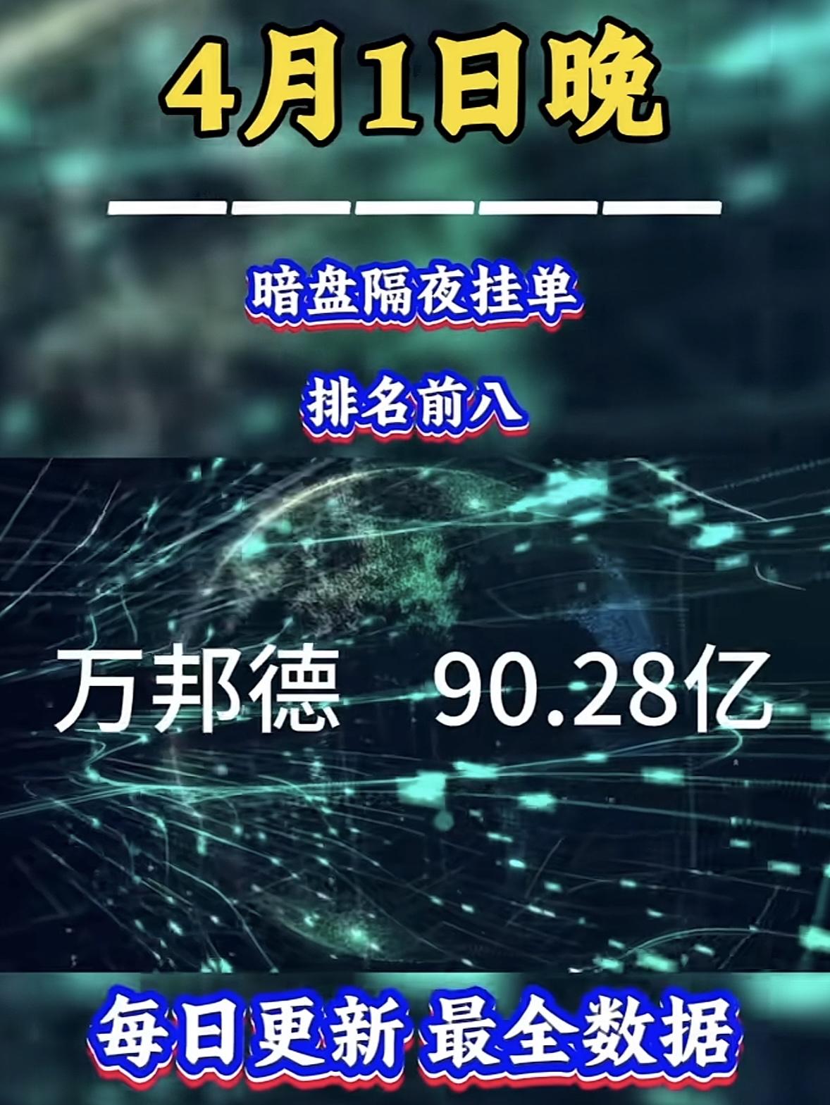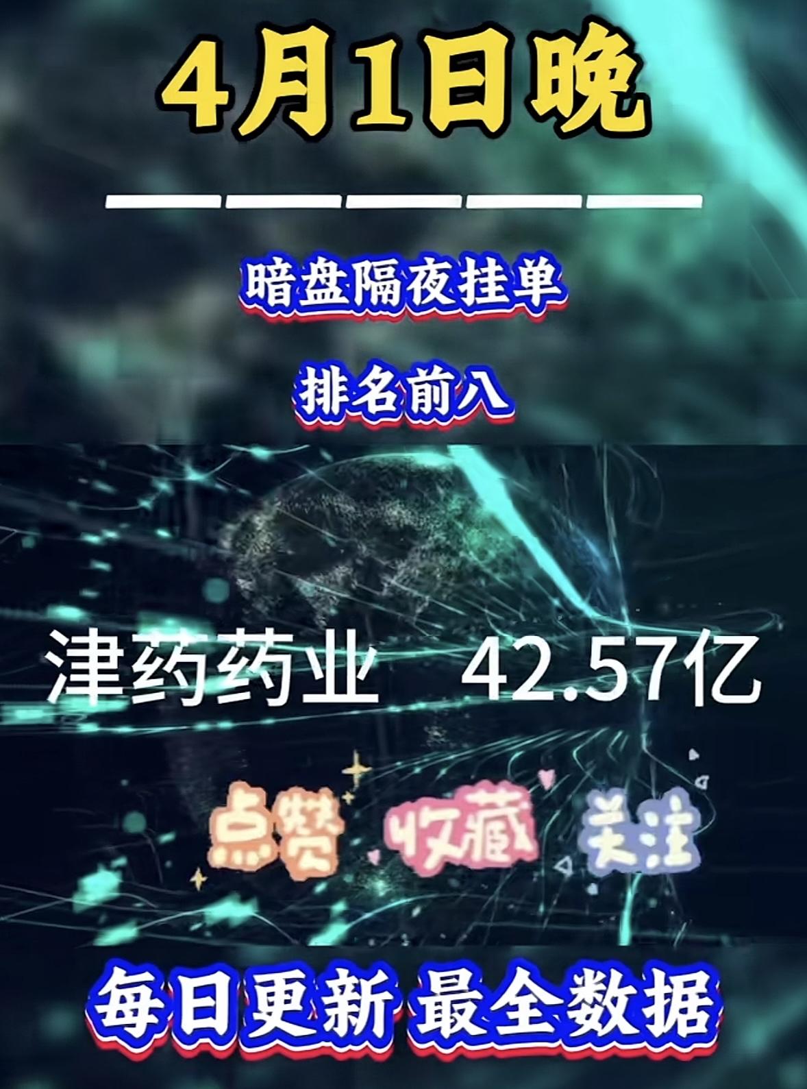4月2日周四暗盘隔夜挂单排行榜出炉 4月1日晚津药药业暗盘隔夜挂单42.57亿,这数字可太惊人了。要知道,津药药业最近股价波动很大,3月31日、4月1日连续两个交易日收盘价格涨幅偏离值累计达20%,3月26日至4月1日股价累计涨幅45.45%,还斩获4连板。 不过,公司基本面没啥大变化,2025年前三季度营收22.32亿元,同比降13.24%,净利润6953.99万元,同比降62.75%。公司也多次提示风险,说股价可能有非理性炒作和下跌风险。这42.57亿挂单,不知道是机会还是陷阱,投资还得谨慎啊。