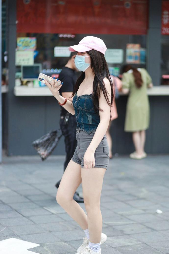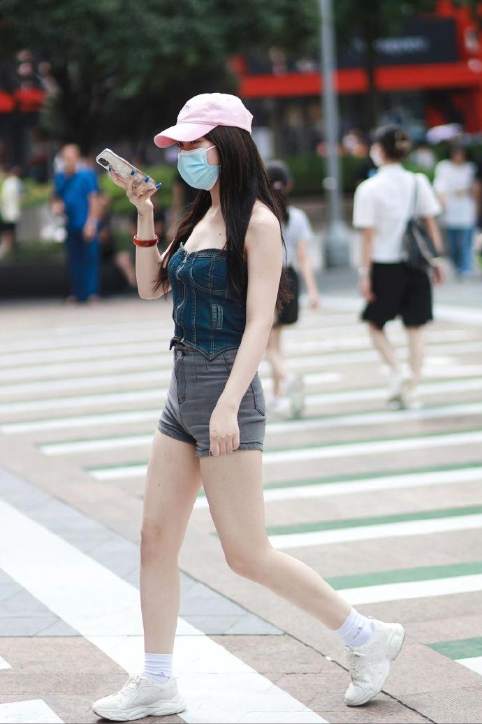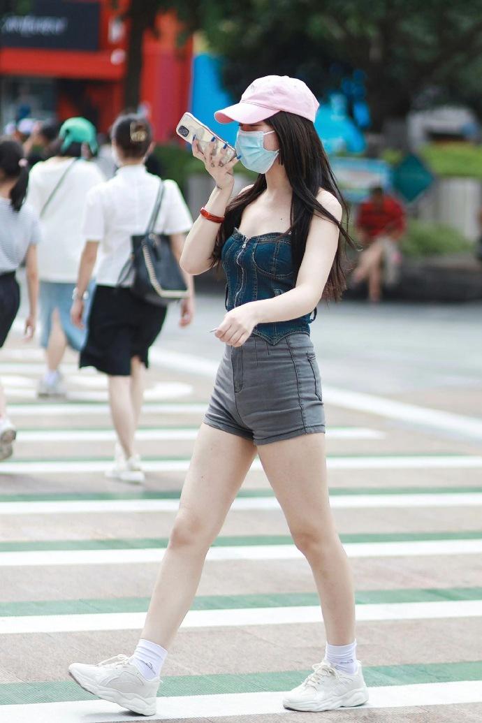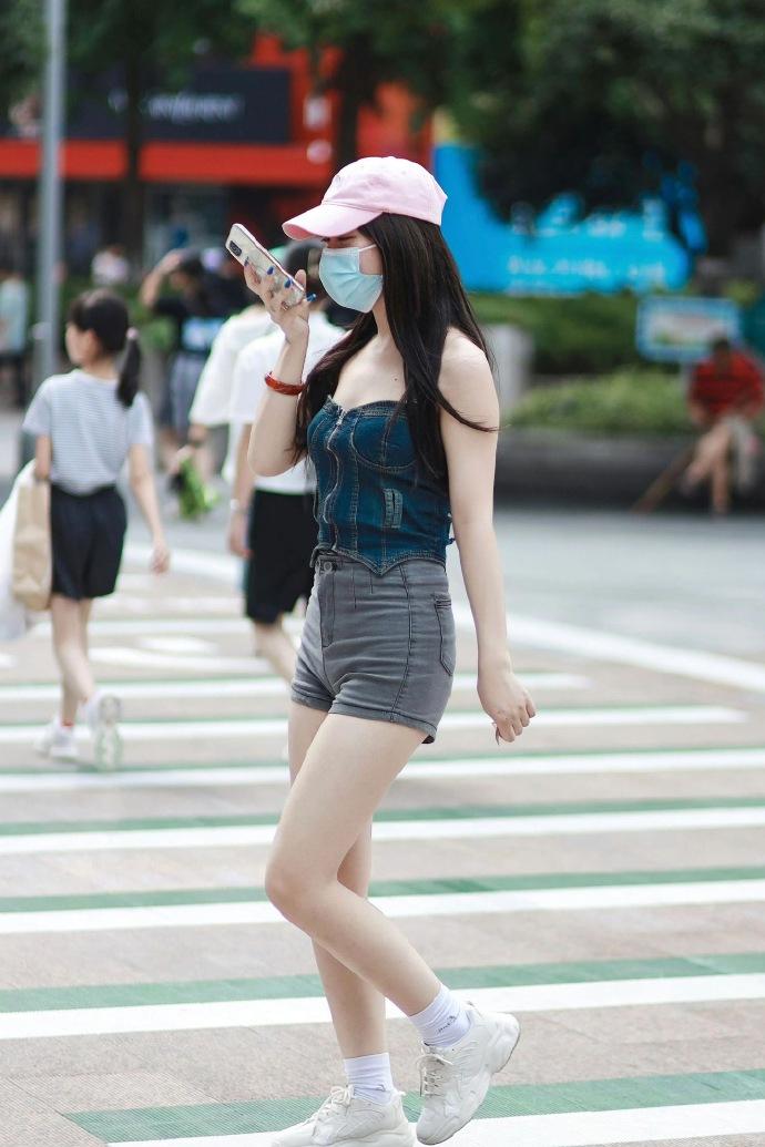高腰灰色短裤,甜酷辣妹风的街头穿搭,整体清爽利落又充满少女感 街拍 时尚穿
