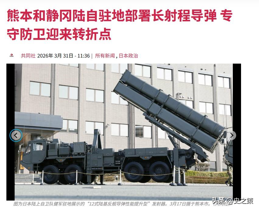 而到了2026年,日本又更进一步,开始“主动出击”。3月31日,日本刚刚在熊本和静冈首次部署了具备“对敌基地攻击能力”远程导弹——日本国产的“25式陆基反舰导弹”和“25式高速滑翔弹”。其中,前者的射程高达1000公里,可覆盖中国大陆的沿海地区。日本计划称,未来十年内将会在日本全境完成所有部署。