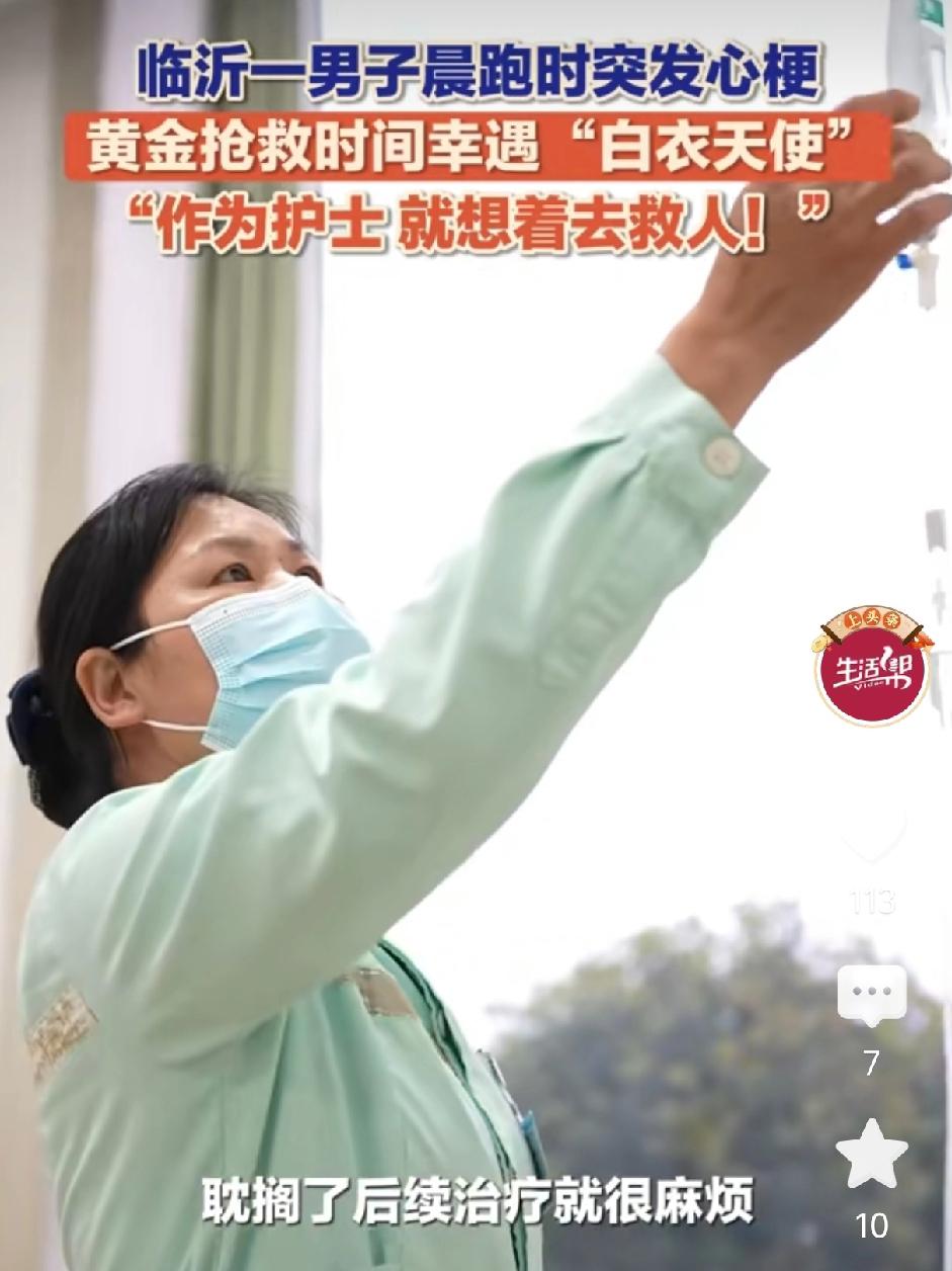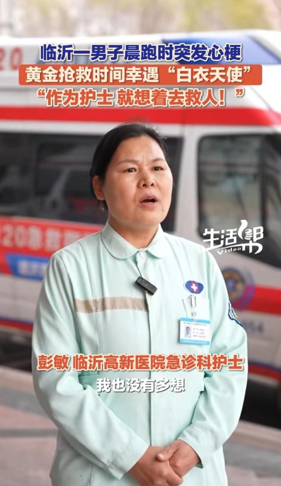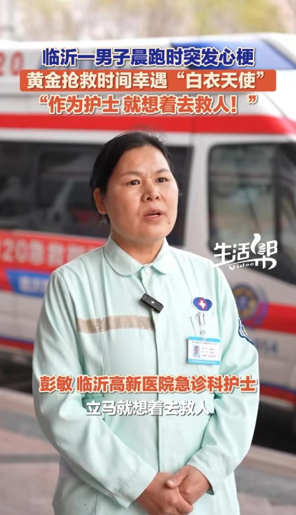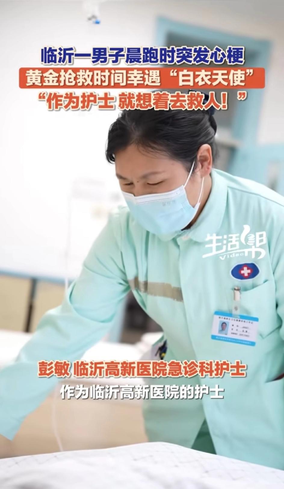 4月1日,山东临沂罗庄,男子晨跑时突发心梗倒地,旁边人手忙脚乱。正好一护士路过,