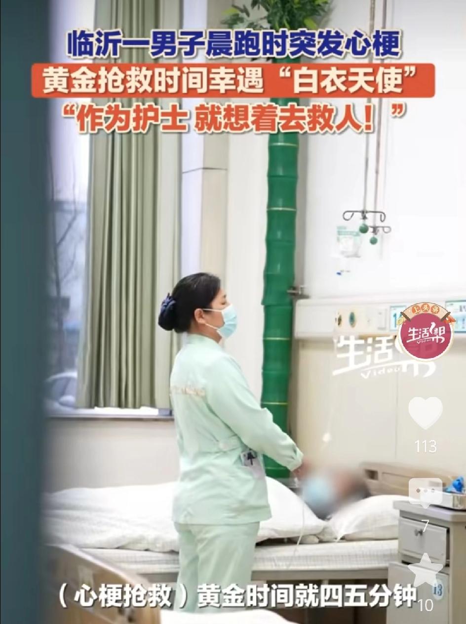 4月1日,山东临沂罗庄,男子晨跑时突发心梗倒地,旁边人手忙脚乱。正好一护士路过,在黄金时间内,给他做心肺复苏,心脏按压。护士是临沂高新区医院的工作人员,被救男子的家人说,一定要好好感谢她。她说我没多想,我是护士,我遇到了,我肯定第一时间想着救人。事后 男子倒地的地方还有一个他的汗水浸湿的身影。心梗突发,人会在短时间内出很多很多的汗。心梗抢救时间也就在5分钟内,否则很难救回,就算救回了,后续的治疗会很麻烦,后续的恢复也会更麻烦。这个男子算是不幸中的大幸,倒下的那一刻,遇到了白衣天使。
