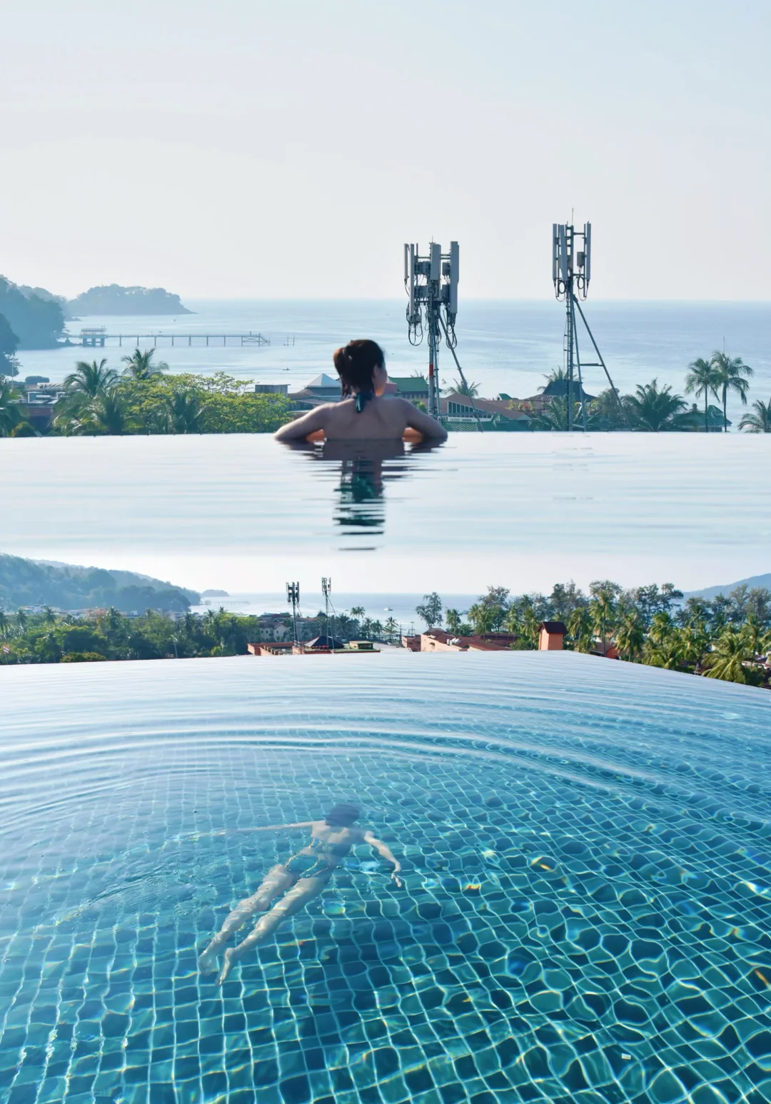 换到Secret Cliff Villa(推开窗就是安达曼海)。在无边泳池泡到傍晚,去悬崖餐厅吃烤虎虾🦐(人均80!)