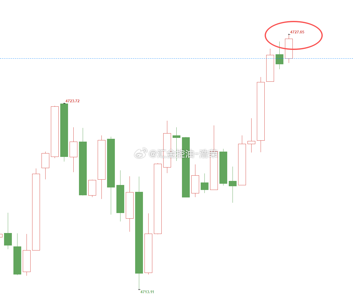黄金4716位置多,现行情如期上涨,现报价4727位置,多单顺利浮盈110个点,