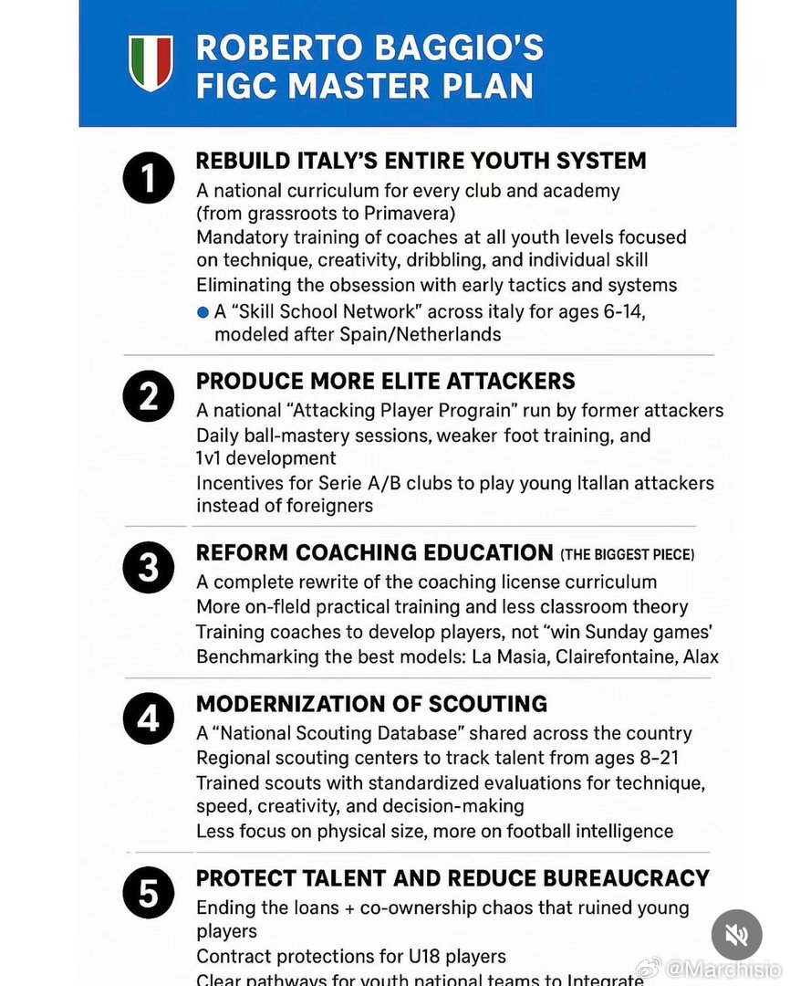 意大利的足球基础设施落后,设施匮乏,体育场破旧不堪,一个世界足球顶级强国甚至表现的还不如一个世界足球里的“第三世界国家”。意大利足协那帮老家伙根本不在乎,他们宁愿烂着,也不愿发展壮大意大利足球,这样才能让他们获得最大的利益。2011年,巴乔(可能是意大利足球史上最伟大的球员之一)向意大利足协提交了一份长达900页的详尽报告,旨在彻底改革意大利足球,重点关注青少年培养、技术水平和教育基础设施建设。然而,足协对这份报告置之不理,导致巴乔在2013年辞去了技术部门主管的职务,他们对待巴乔就像对待一条狗一样,任你狂吠,我自岿然不动。