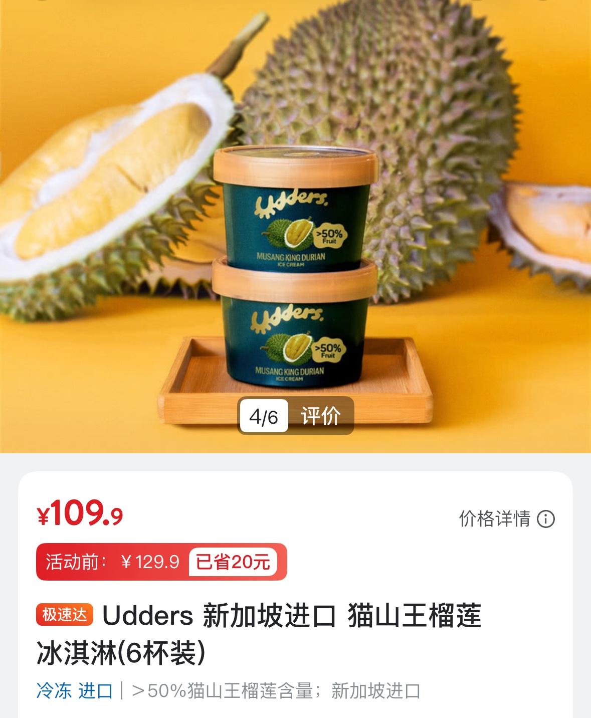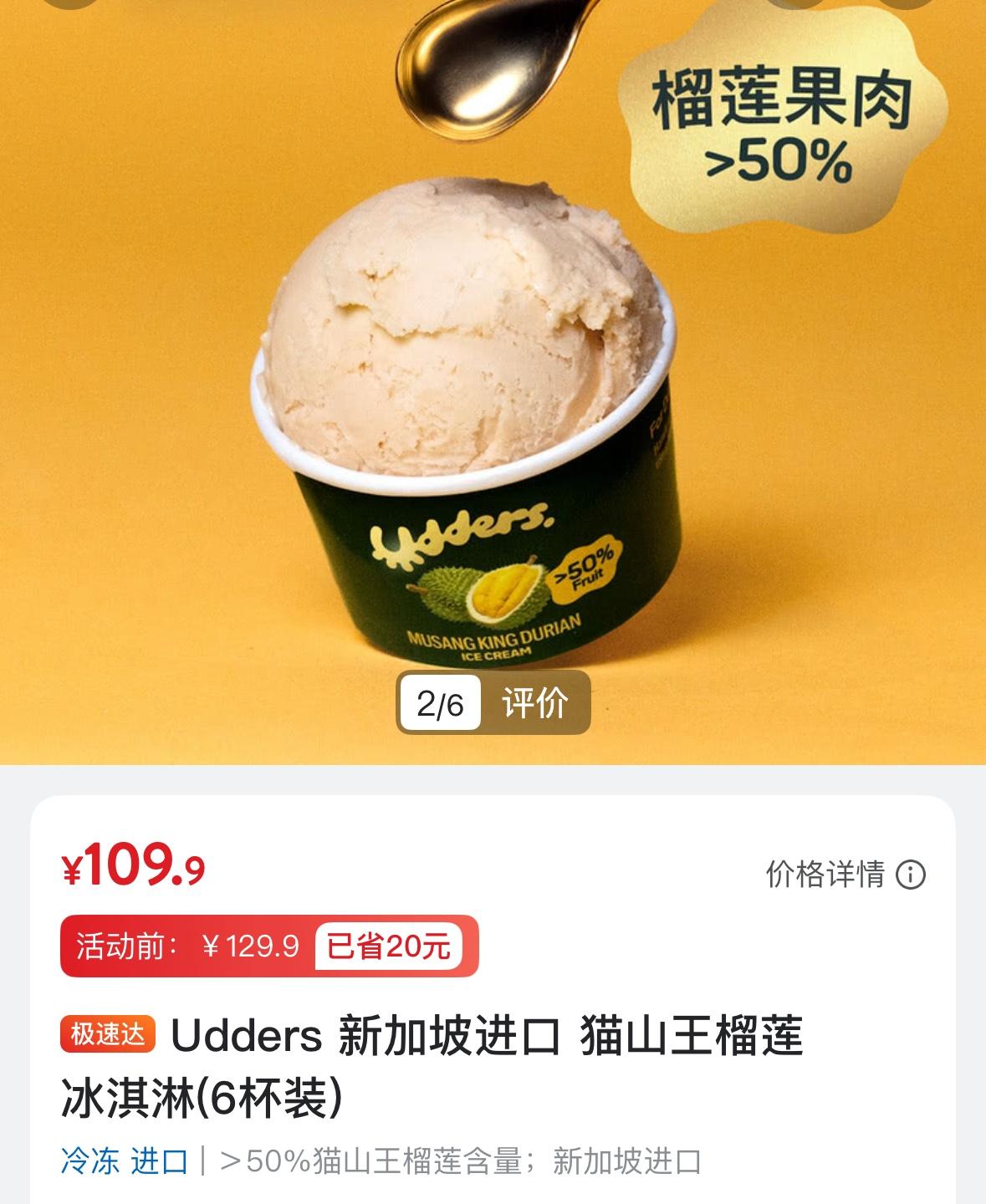 晚上吃了一个小雪糕,猫山王榴莲雪糕,味道浓郁无比(水果含量50 %),算是我吃过最好吃的雪糕。前段时间山姆换季促销买的,6个109元,比原价优惠20元,折合每个18.3元。比起哈根达斯更货真价实,也更美味。