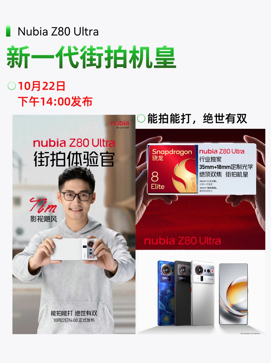 刚刚刷到努比亚Z80Ultra的爆料和各种样片,还有Tim大佬的同款街拍,努比亚这次真的有点东西!简单的说,这已经不止是手机,而是把专业相机塞进了口袋,还是加了特效的那种[星R]