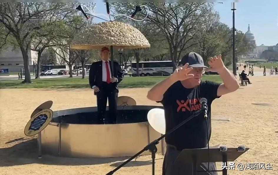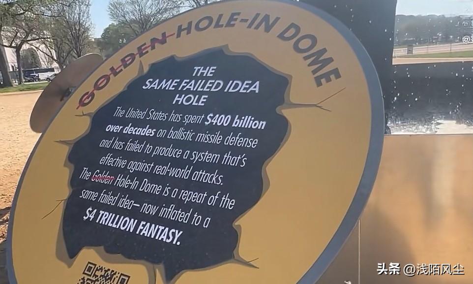 活动人士在美国华盛顿国会大厦前竖起了一座具有讽刺意味的“金顶”纪念雕像,以此批评特朗普提议的美国导弹防御系统——他们称该系统“毫无成效、造价惊人,且具有危险的破坏稳定作用”。