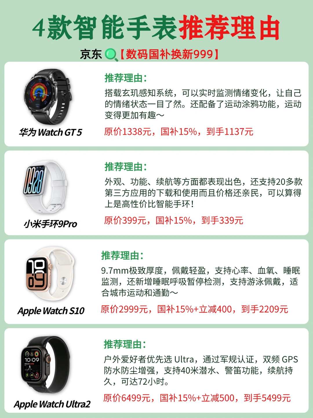 近期想入智能手表⌚的宝速速看过来,京东国补有大优惠啦!