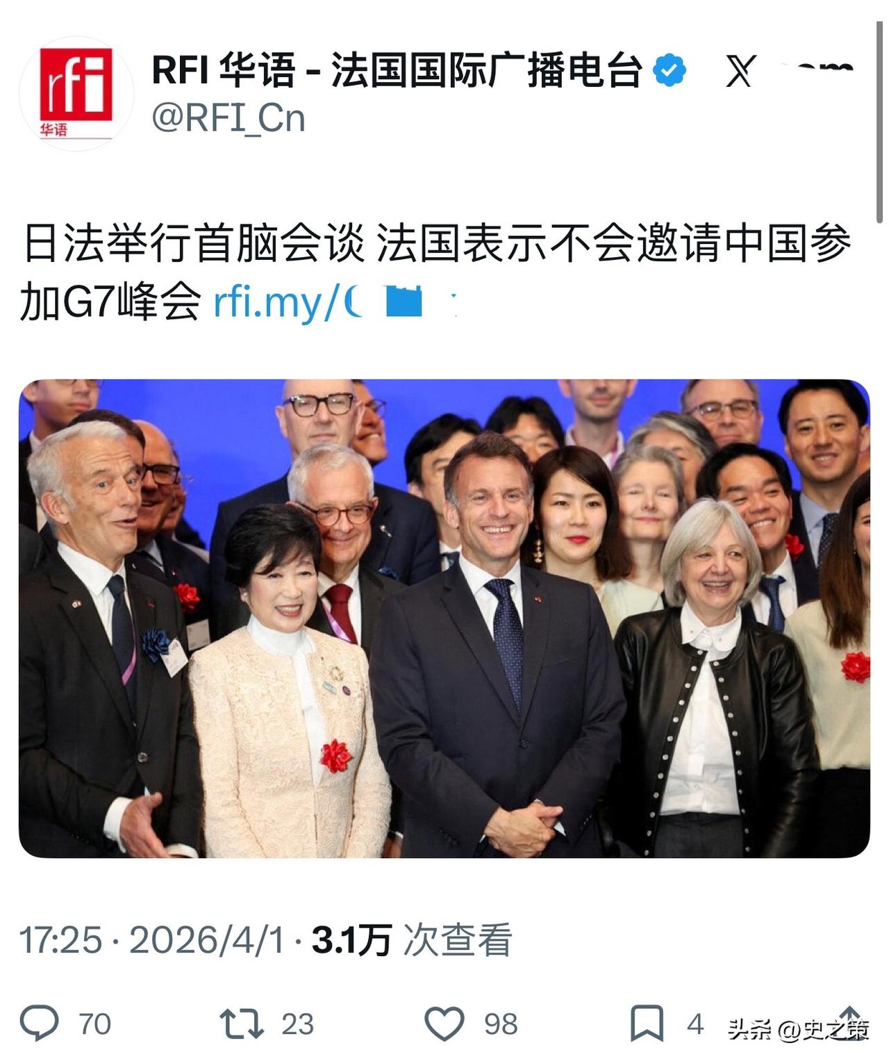 二是法国想好了,不会邀请中国参加6月份的G7峰会。今年,法国作为G7峰会的轮值主席国。去年12月份,马克龙访华的时候,曾有消息说想邀请中国参加峰会。当时,日本还特意致电法国想出面阻挠。高市政府给出的理由是中国和G7的“价值观不符”,希望马克龙“谨慎邀请”中方参会。
