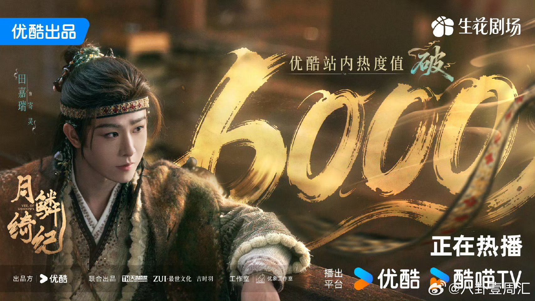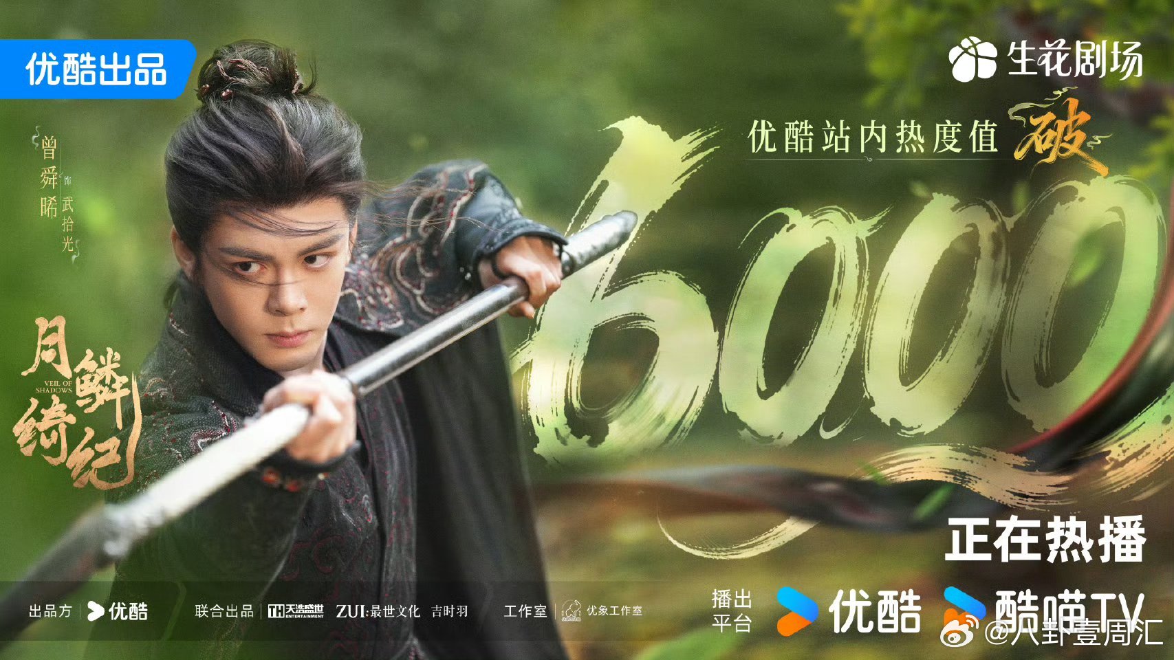 月鳞绮纪热度破6000 鞠婧祎曾舜晞陈都灵田嘉瑞《月鳞绮纪》优酷站内热度破600