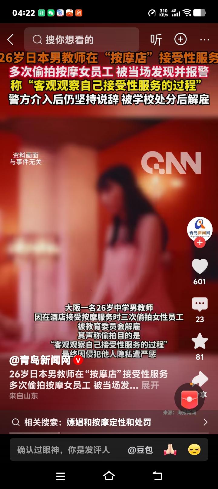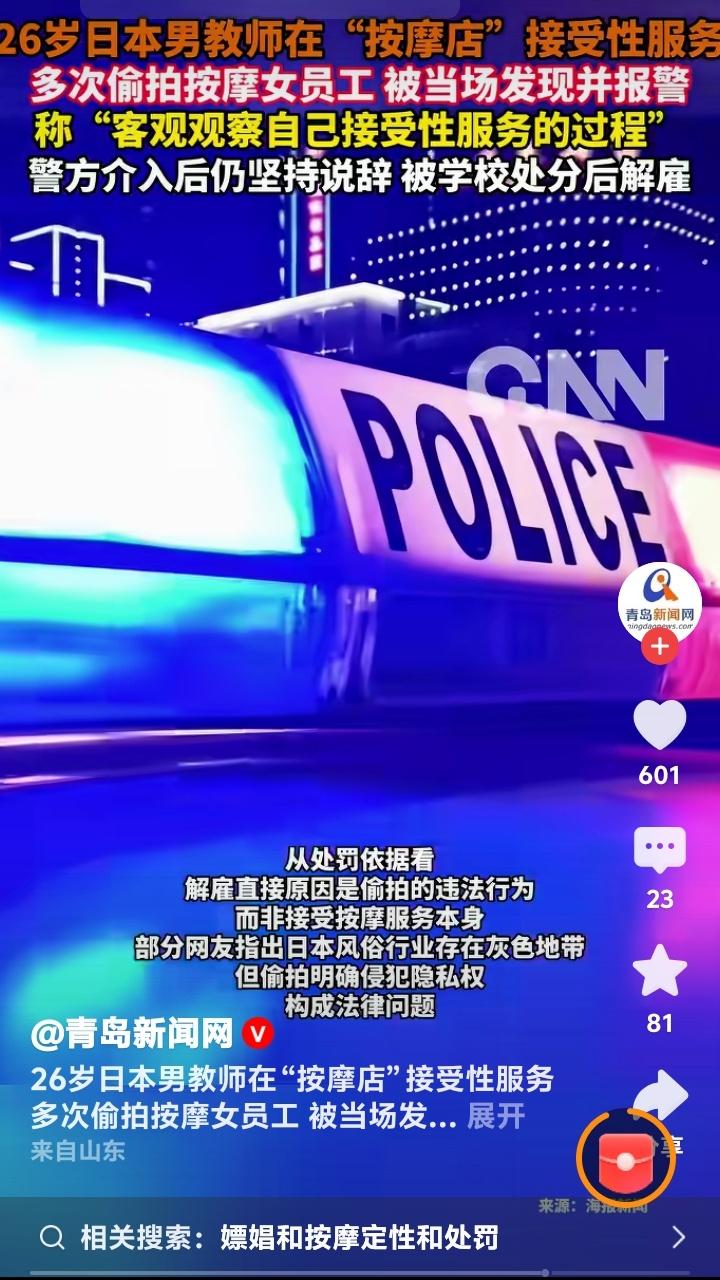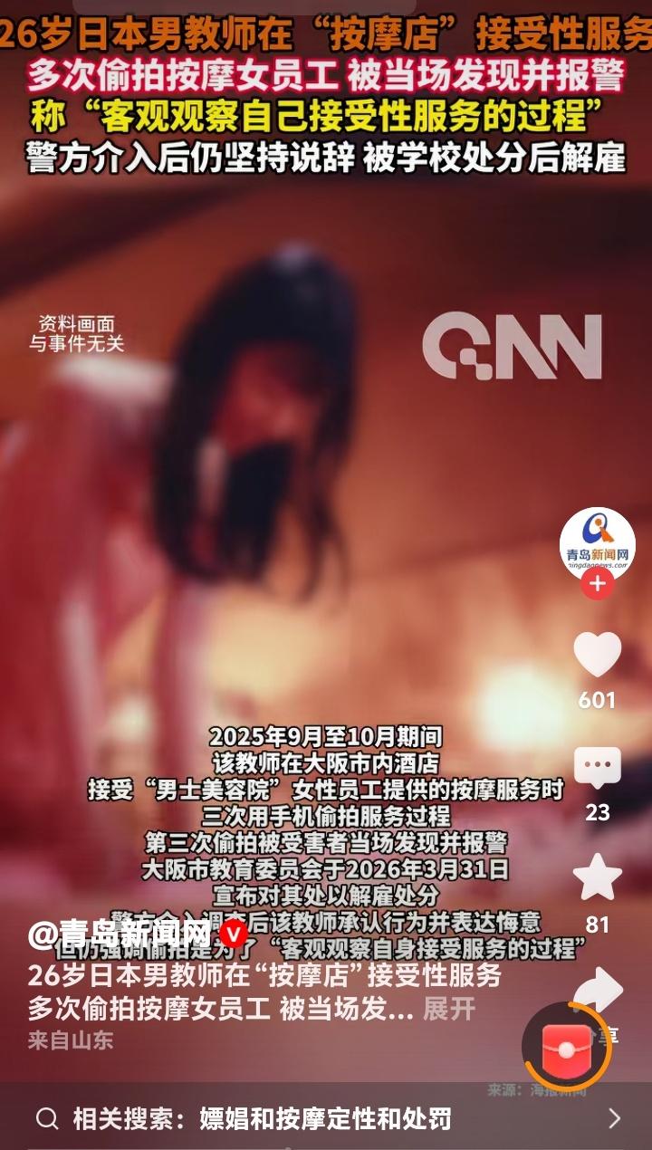 日本大阪26岁男教师按摩店偷拍被抓,竟辩称“为客观观察性服务过程”,遭解雇后网友炸锅:这是学术研究还是道德沦丧? 当手机镜头悄悄对准毫无防备的按摩女员工时,这位来自大阪的26岁中学教师,或许真的以为自己正在进行一场“客观观察”。三次偷拍,直到第三次被当场抓获,他面对警方和教育委员会,依然坚持那套令人瞠目的说辞。这不仅是隐私的侵犯,更是一场对职业道德与人性的赤裸挑衅。 为人师表者,本应是社会道德的标杆,学生眼中的榜样。然而,这位年轻教师却将课堂之外的私欲,伪装成一种荒诞的“自我观察”。他的行为早已逾越了法律的红线,更践踏了教师职业最基本的伦理底线。教育委员会的解雇处分,是对这种行为的零容忍,也是对社会公序良俗的坚决捍卫。 偷拍行为本身,在任何文明社会都是明确且严重的违法。它侵犯的是他人最基本的隐私权和人格尊严。无论其背后的服务存在于何种灰色地带,偷拍的镜头都瞬间将任何可能的辩解击得粉碎。法律面前,没有“观察”的借口,只有对他人权利冷酷的侵犯。 更值得深思的是他那套“客观观察”的诡辩。这背后折射出的,是一种将他人物化、将不道德行为“学术化”以自我开脱的扭曲心态。试图用看似理性的外衣,包裹住最不堪的私欲与恶意。这种逻辑的荒谬,恰恰暴露了其内心道德感的严重缺失。 事件曝光后,网络舆论瞬间沸腾。网友们辛辣的评论,剥开了事件最核心的荒诞:“嫖就嫖了,还给自己留证据”、“老师就是老师,表述能力没得说”。这些话语背后,是公众对伪善的厌恶,对滥用知识与身份者的嘲讽,更是对底线共识的强烈呼唤。 从讲台上的传道者,到按摩店里的偷拍者,角色的撕裂令人心惊。它警示我们,师德建设绝非空谈。教师的考核与监督,不能仅限于校园之内,其作为社会人的品行同样至关重要。一次失德,足以摧毁多年建立的信誉,也玷污了整个教师群体的形象。 对于受害者而言,这次遭遇无疑是巨大的伤害。她们在提供服务的场所,本应享有安全与尊重,却成了他人满足窥私欲的对象。她们勇敢报警的选择,不仅维护了自身权益,也阻止了潜在更多人受害的可能,值得社会的支持与声援。 最终,这位教师为其行为付出了丢掉工作的沉重代价。这个结局清晰地传递出一个信号:无论身处何种行业,无论编织何种理由,侵犯他人权利、违背社会公德的行为,都必将受到严惩。社会道德的底线,不容任何人以任何形式去试探和践踏。 (来源:综合青岛新闻网、海报新闻等媒体报道) 教师失德 偷拍零容忍