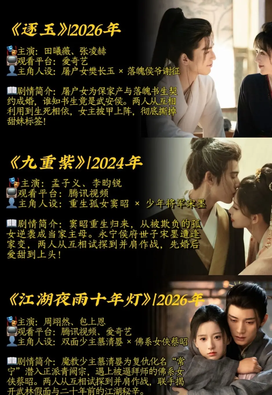 整理了12部近三年高分双强古装剧,每一对CP都强到炸裂👇