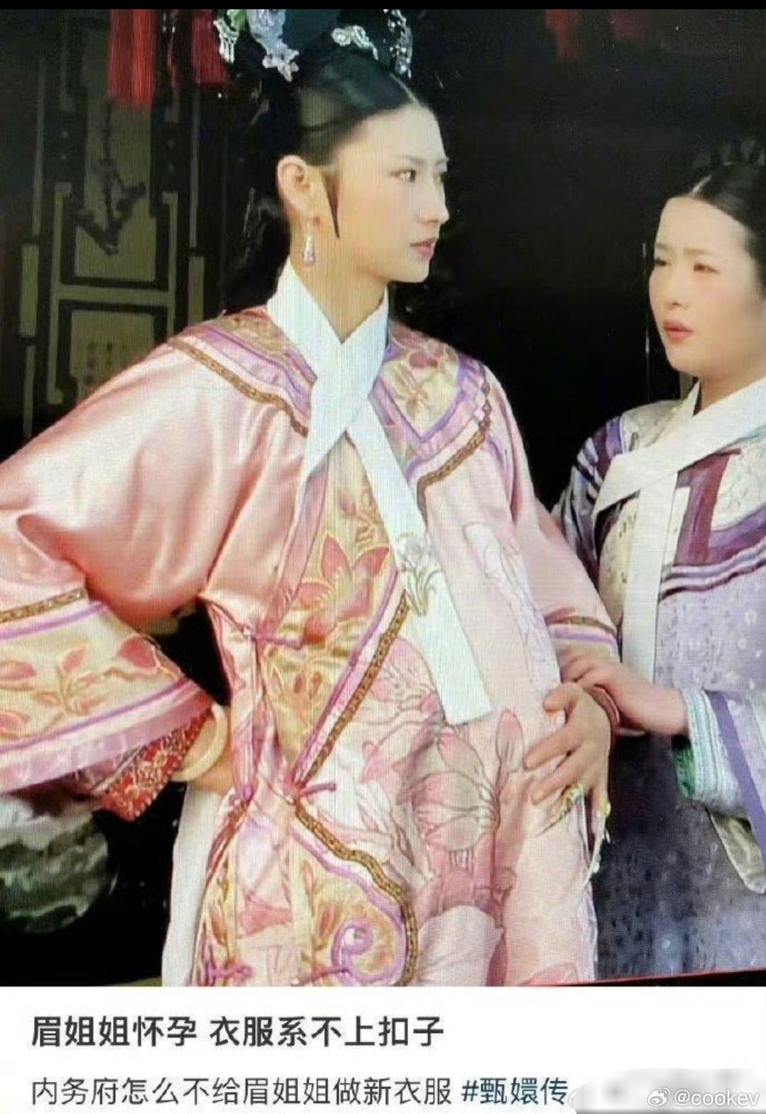 甄嬛传中,眉姐姐怀孕后衣服扣不上,但内务府未为她制作新衣。