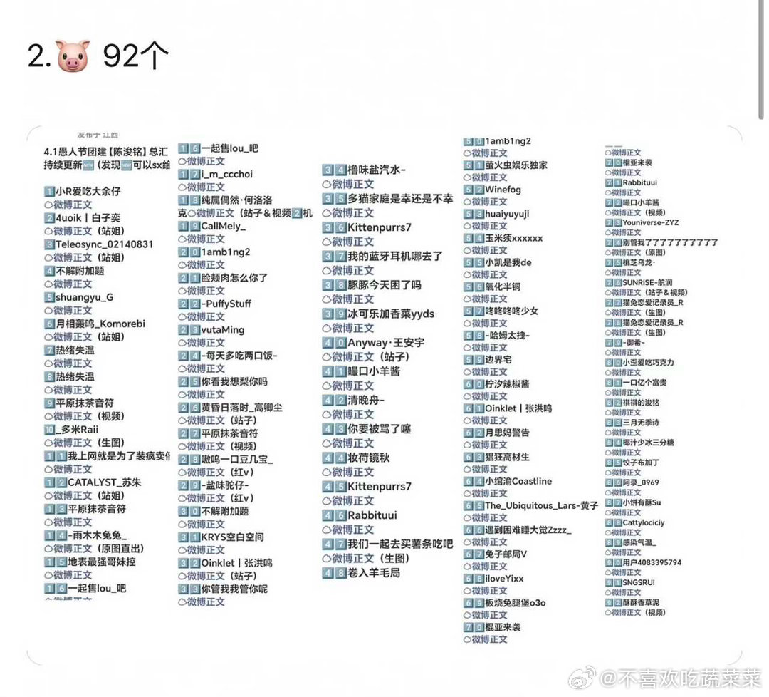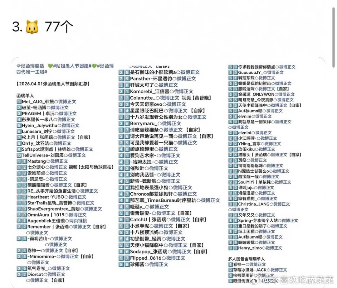 tg 愚人节别家站姐出图数量汇总:🦌101 🐷92 🐱77 🐉32 🐑18 🐹15🍖14