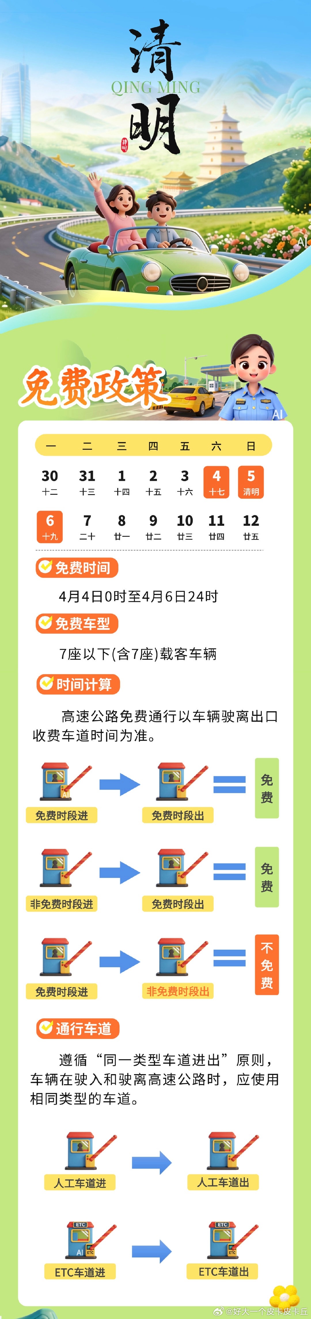 清明高速免费期间如果您是免费前上高速领了 CPC 卡,下高速时记得:✅ 走人工车道,把卡交还给工作人员,如无人值守就放进回收箱。如果是纸质通行凭证:✅ 直接走人工车道驶离,无需归还⚠️ 重要提醒:领卡 / 纸券车辆,千万别走 ETC 车道!走人工车道驶离。转发给要出行的家人朋友,避免耽误行程~