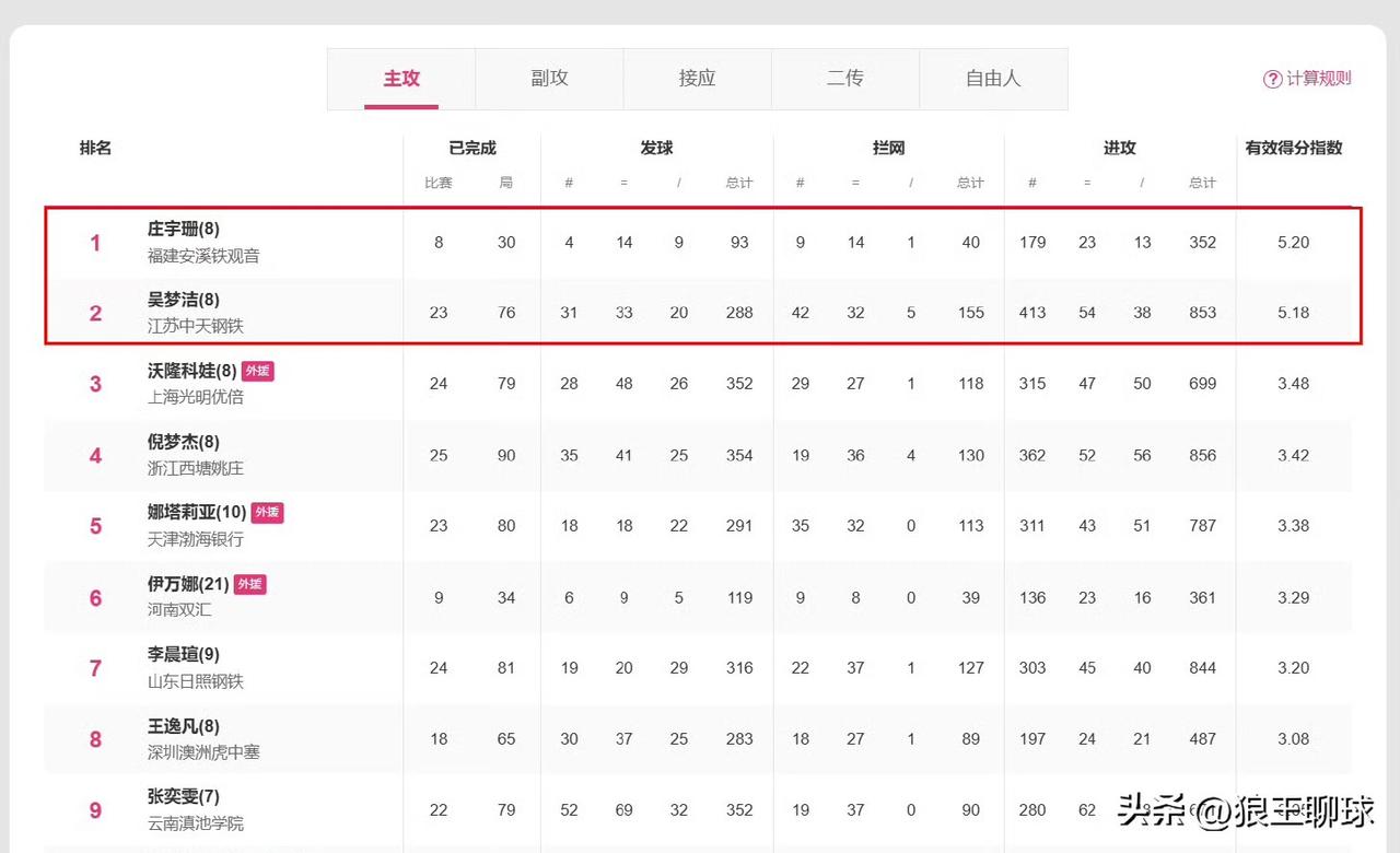 收官逆转!庄宇珊反超吴梦洁登顶主攻榜,本土新星格局生变 2025-2026排