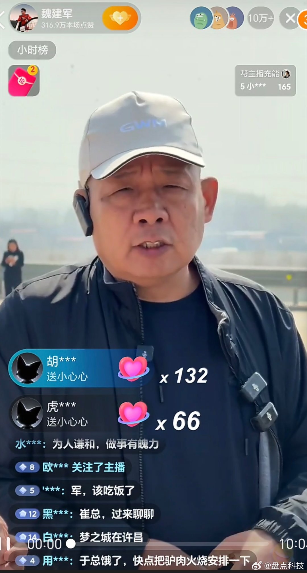 前段时间于东来和魏建军在网上隔空喊话,没想到这么快就碰面了,而且魏建军还亲自带队探秘工厂黑科技!!于东来惊叹:这才是真正的中国制造!这才是真正的惺惺相惜吧?魏建军于东来合体直播魏建军带于东来飙车